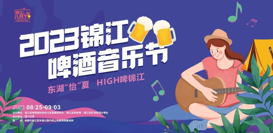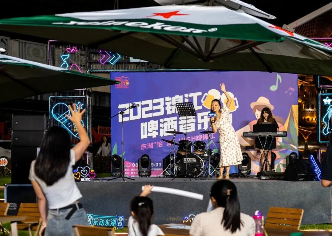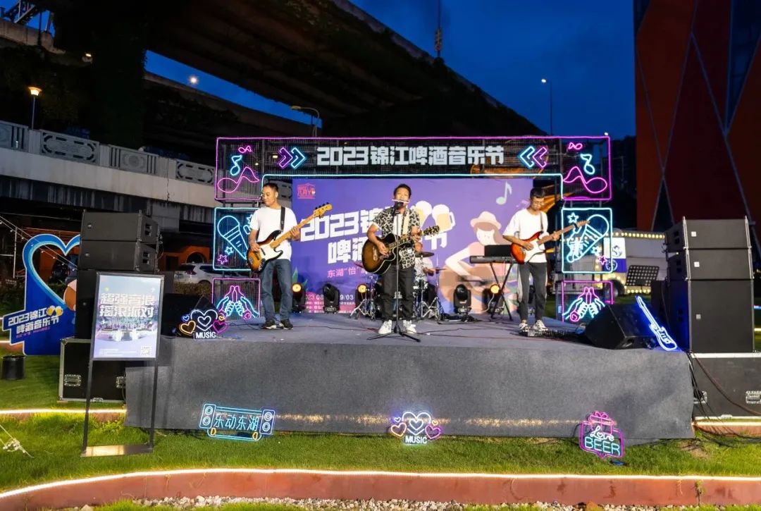 8月25日至9月3日,由春熙路时尚活力区管委会、锦江区商务局与东湖街道办事处主办,域上和美文化发展有限公司承办的锦江啤酒音乐节系列特色消夏活动在东湖公园举行。
