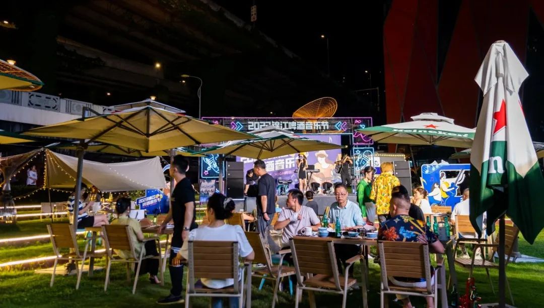 2023锦江啤酒音乐节系列消夏活动,在东湖街道,以星空为幕,以草坪为台,以歌声为引,在轻松、闲适的氛围中构建了锦江区特色消费场景,发展了“周末经济”与“夜经济”,将时尚潮流与蓉城特色相融合,这些在地文化与经济活动,体现着成都温度,促进着成都城市发展的活力。