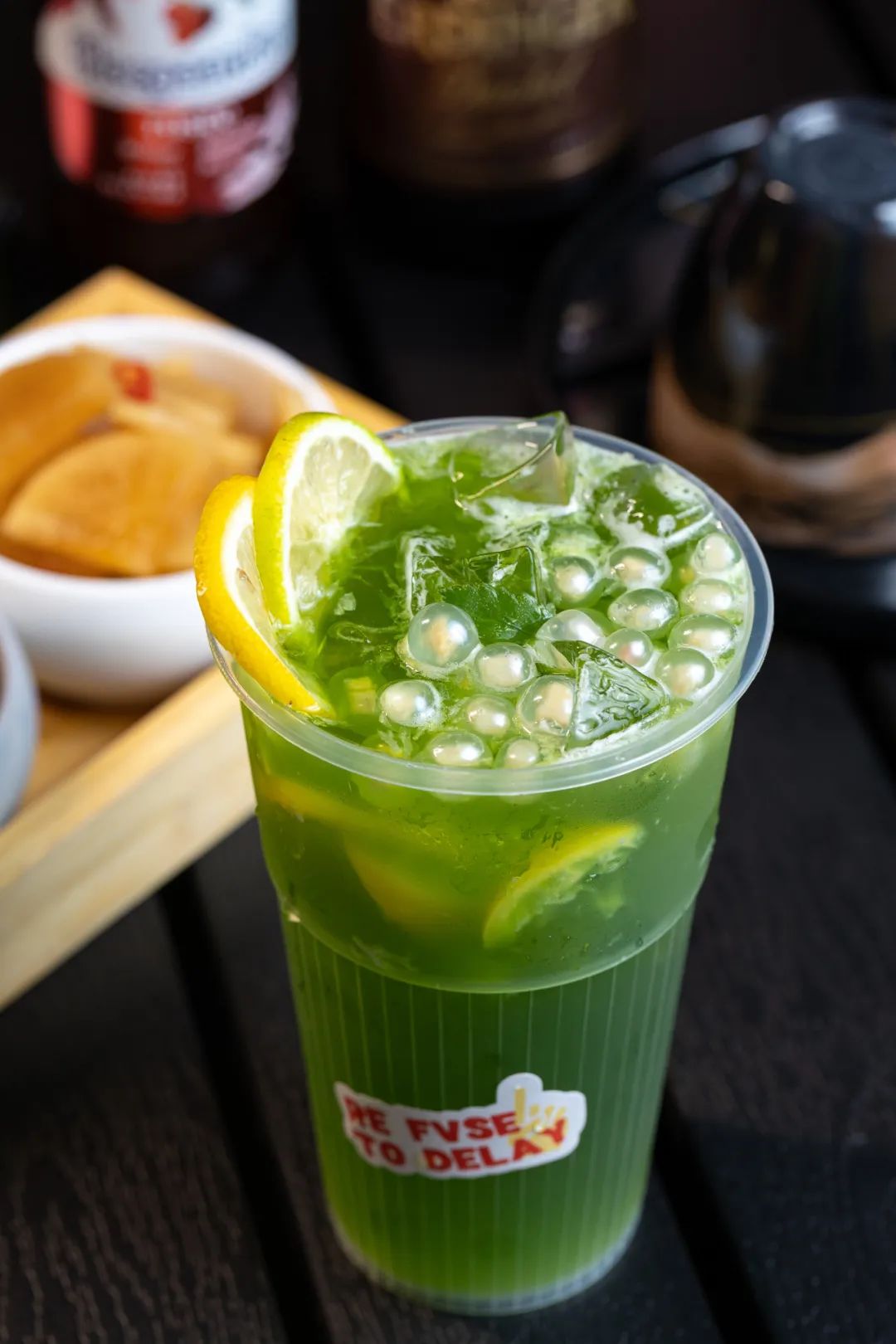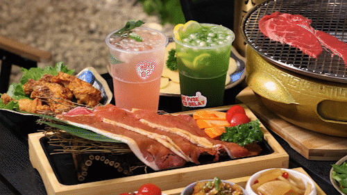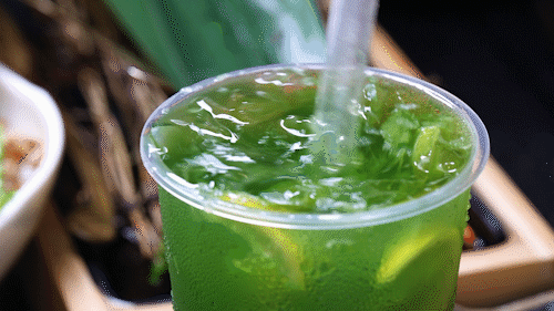 「云栖·觅境烤肉派对」除了烤肉一绝,还有很多颜值超高的饮品,招牌笑着被“绿”,清新爽口,简直是烤肉的好搭档,小嘬一口,一阵清凉感席卷全身。