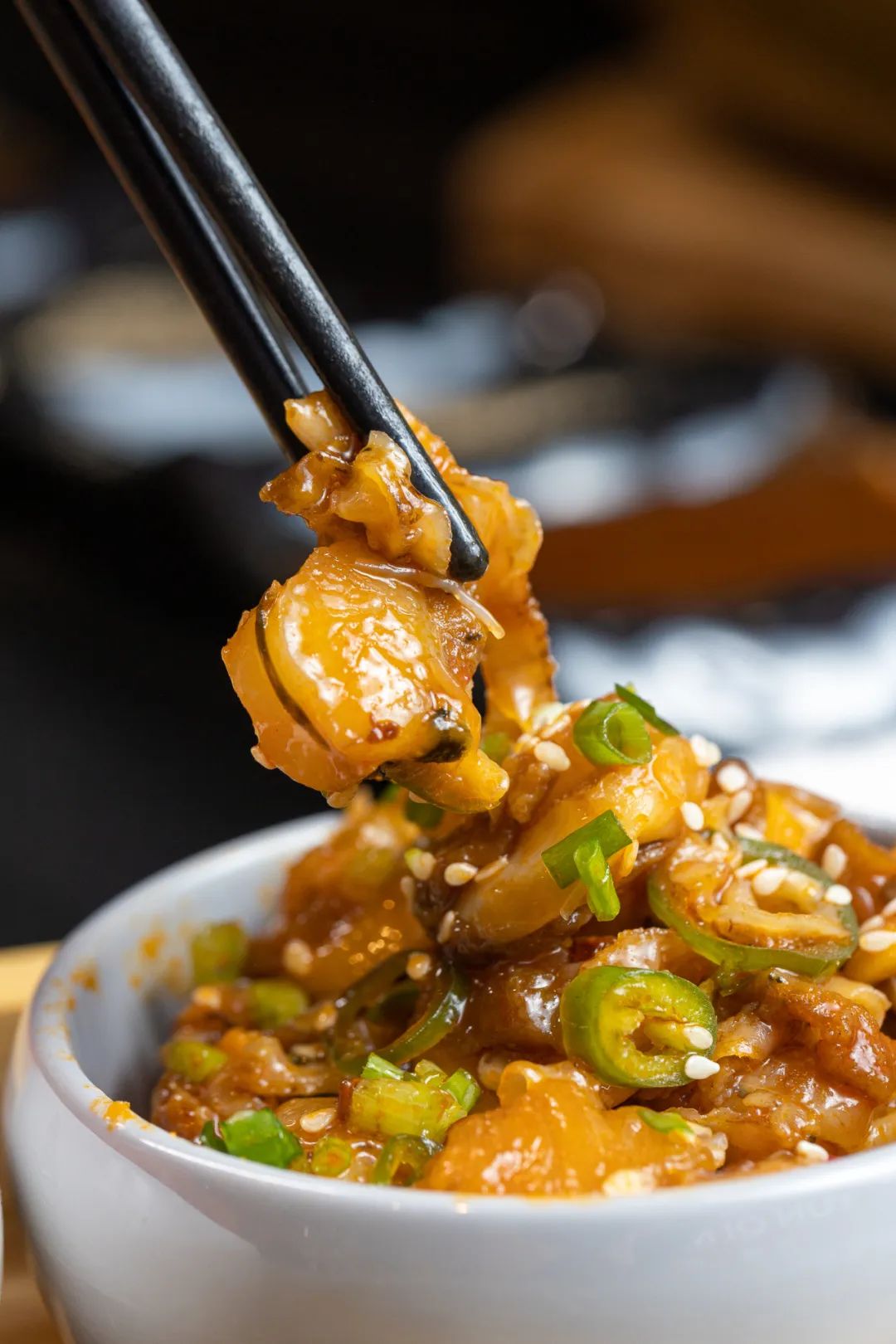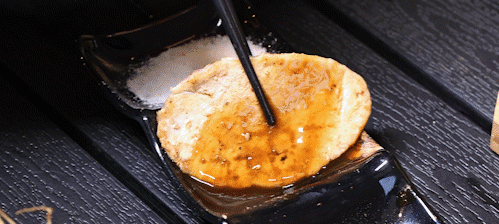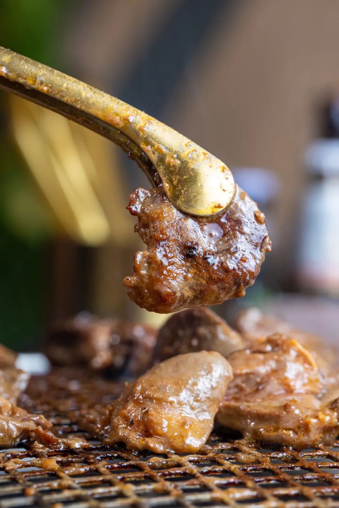 鸡心提前腌制,很是入味儿,经过高温炭烤,油脂被高温炭火逼出,嚼在嘴里咯吱咯吱的,很有嚼劲!唇齿之间唯有脂肪的香醇与嫩肉的焦香。