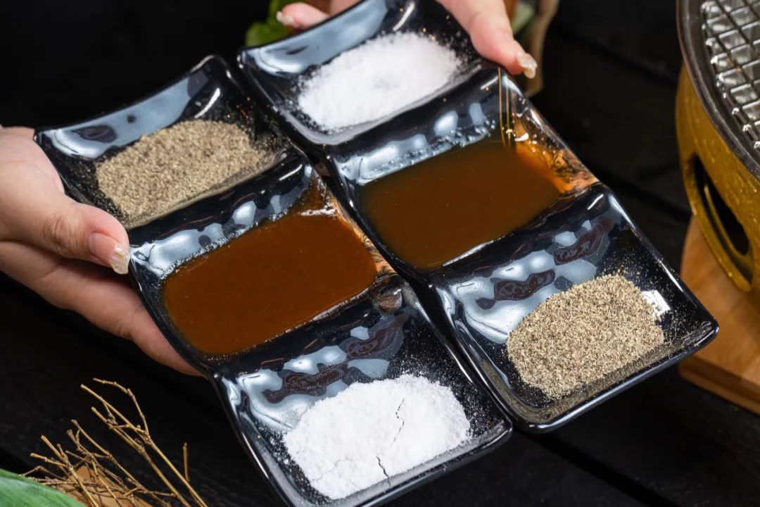 每桌配备四种秘制酱料,其中黑胡椒和进口喜马拉雅玫瑰海盐烤肉标配,搭配嚼劲十足的肉质,不仅解腻口感还能更丰富,吃肉吃的嘎嘎香 !!