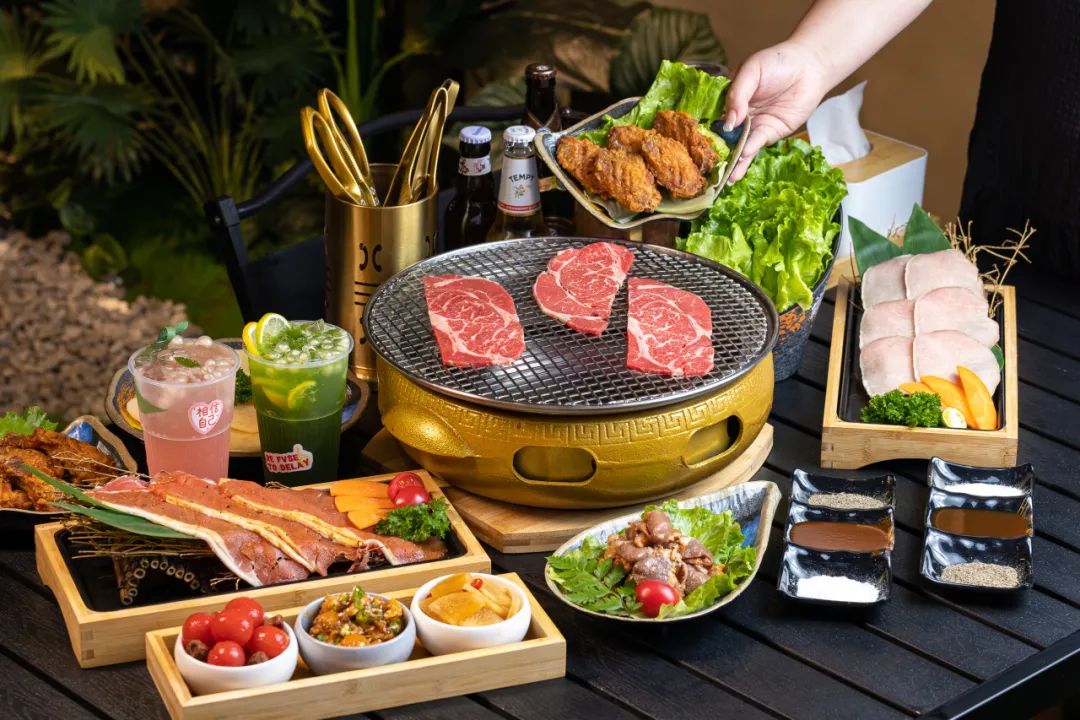 「云栖·觅境烤肉派对」食材以优质谷饲牛肉为主打,集世界多国烤肉风味相融合,各类小食、小菜各种应有尽有,叫上三五知己,今晚下班就来这里嗨吃欢聚!