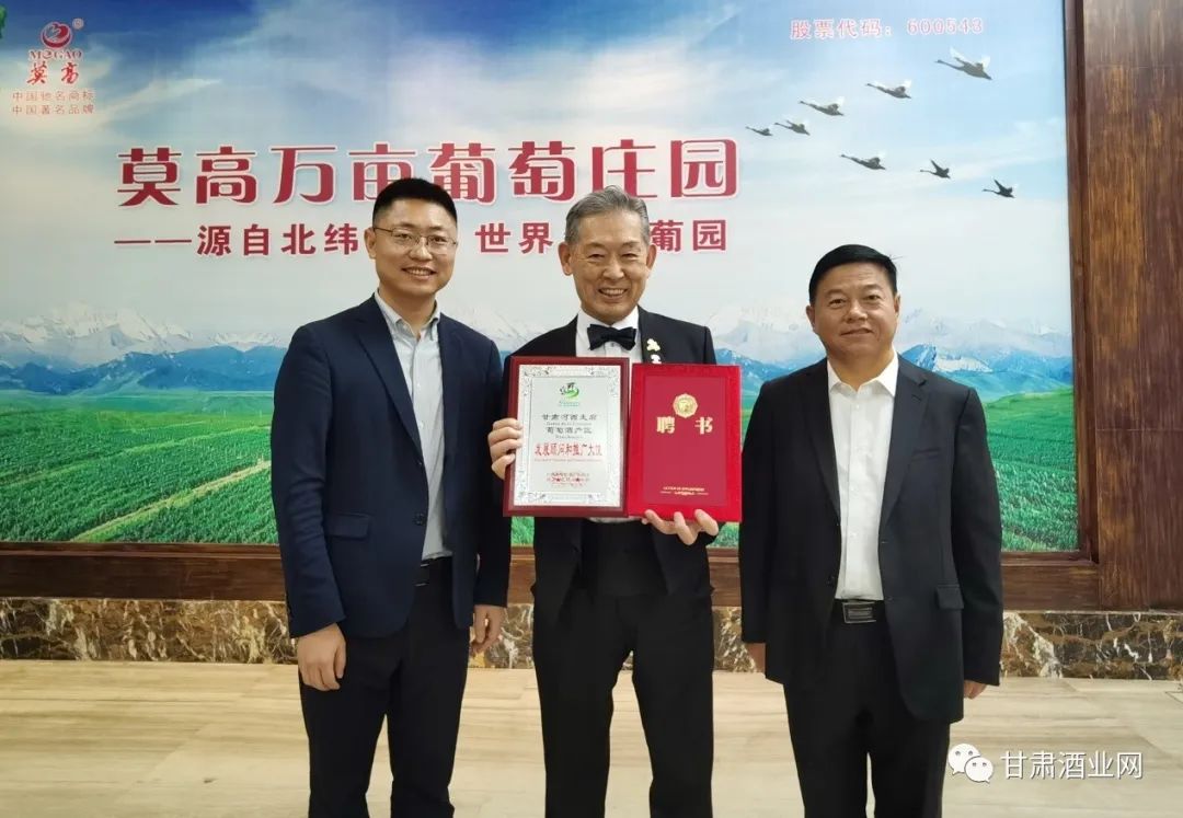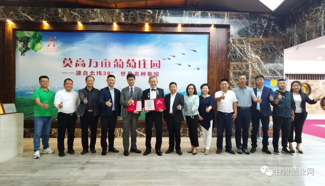甘肃省葡萄酒产业协会副会长兼秘书长卢柯,甘肃省酒业协会会长张秉庆、副会长兼秘书长李云,甘肃省葡萄酒产业协会副会长、滨河集团总裁许文亮,国风庄园公司总经理肖华,甘肃莫高实业公司副总经理、监事会主席、葡萄酒事业部总经理王润平,甘肃省葡萄酒产业协会副会长、祁连酒业公司董事长潘鸿,紫轩酒业公司兰州销售公司总经理刘应森等领导,在兰州莫高国际酒庄陪同考察并与高野一行品鉴各企业葡萄酒并进行了座谈交流。同时,高野丰、刘平原受聘为“甘肃河西走廊葡萄酒产区发展顾问和推广大使”,并为二位颁发牌匾与证书。