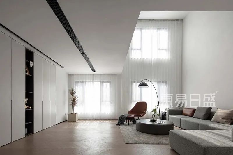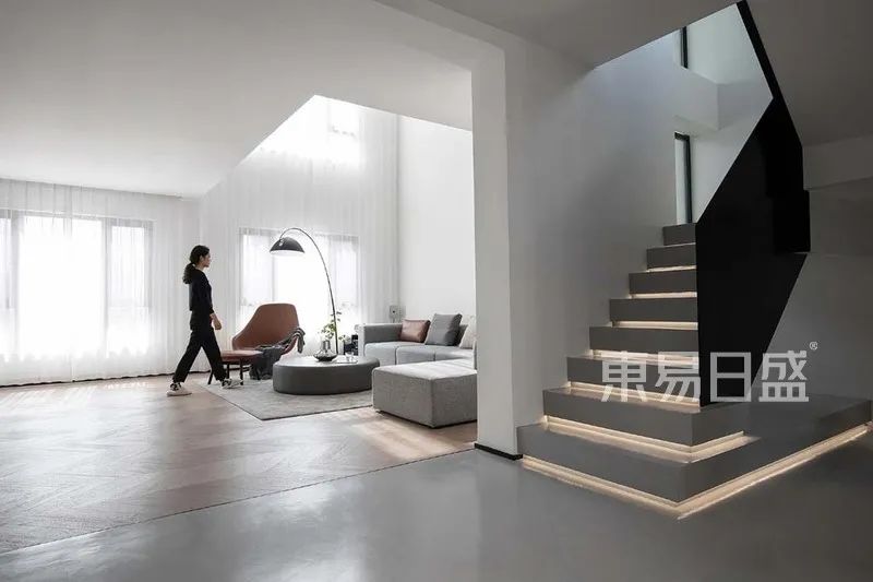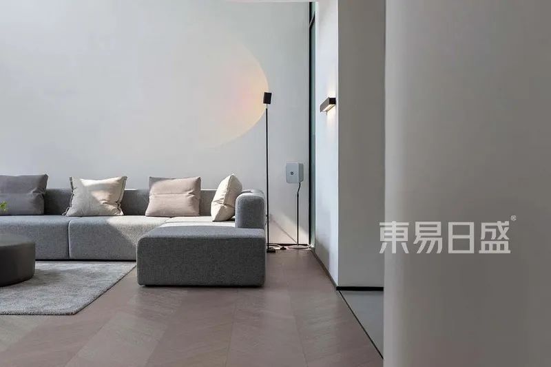 客厅没有过多颜色,让共享空间更显宽绰、设计师巧妙运用光线以及色彩对光源的感知,为纯粹的空间带来变化。