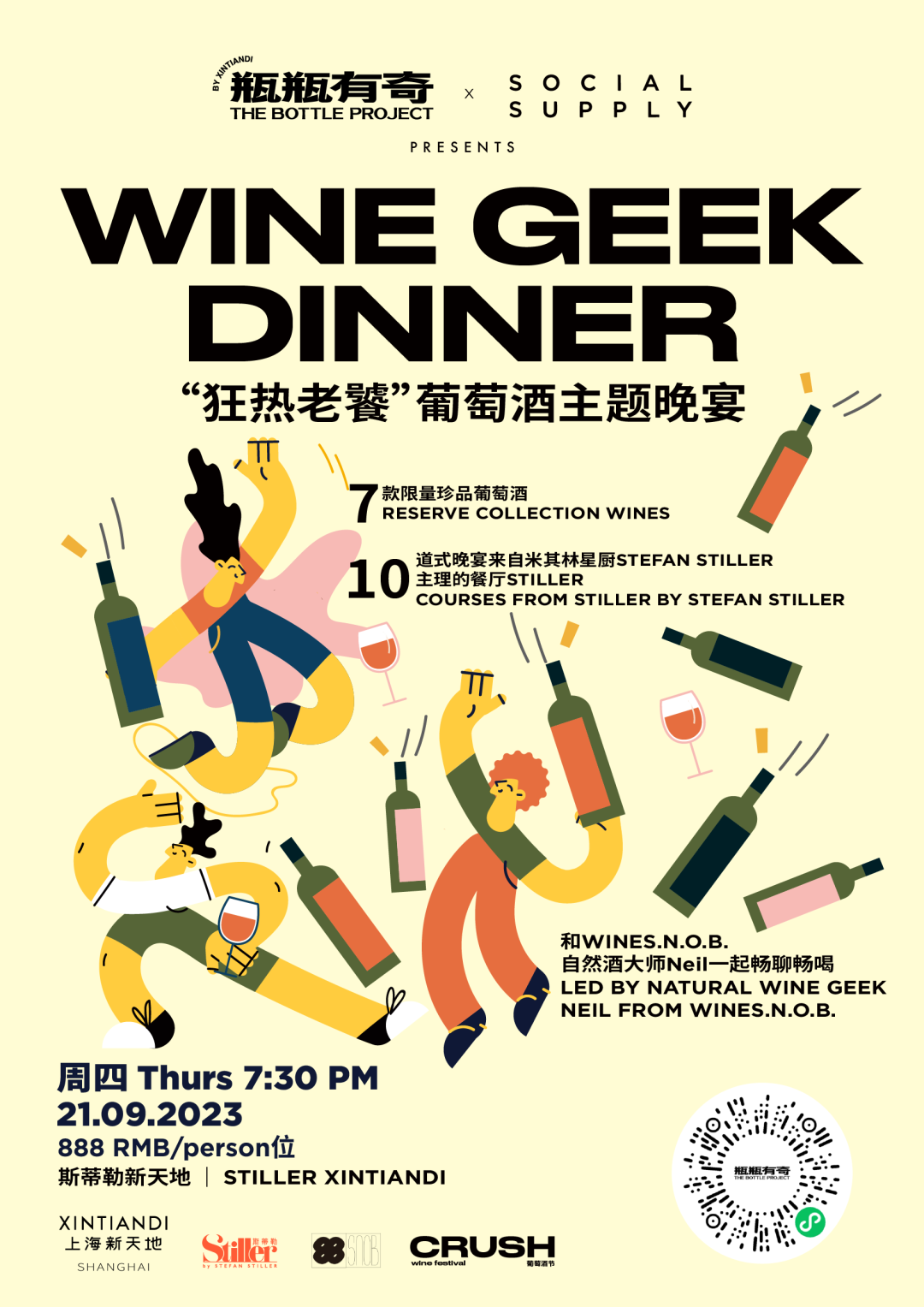 ?初秋的第一场葡萄酒活动,我们在9月21日为“狂热老饕”带来了限量精品葡萄酒品鉴晚宴,为CRUSH开喝预热!在自然葡萄酒老饕Neil的引领下,大家将在来自米其林星厨Stefan Stiller主理的餐厅“Stiller”共享10道式晚宴,品味现代欧式料理,同时搭配来自WineS.N.O.B.私藏系列的7款稀有限量版葡萄酒。名额有限,如果你是葡萄酒狂热老饕,这场葡萄酒味觉狂欢绝对不容错过!