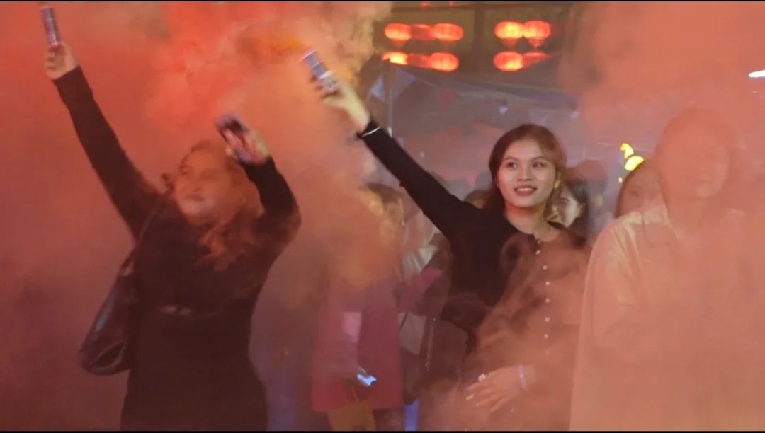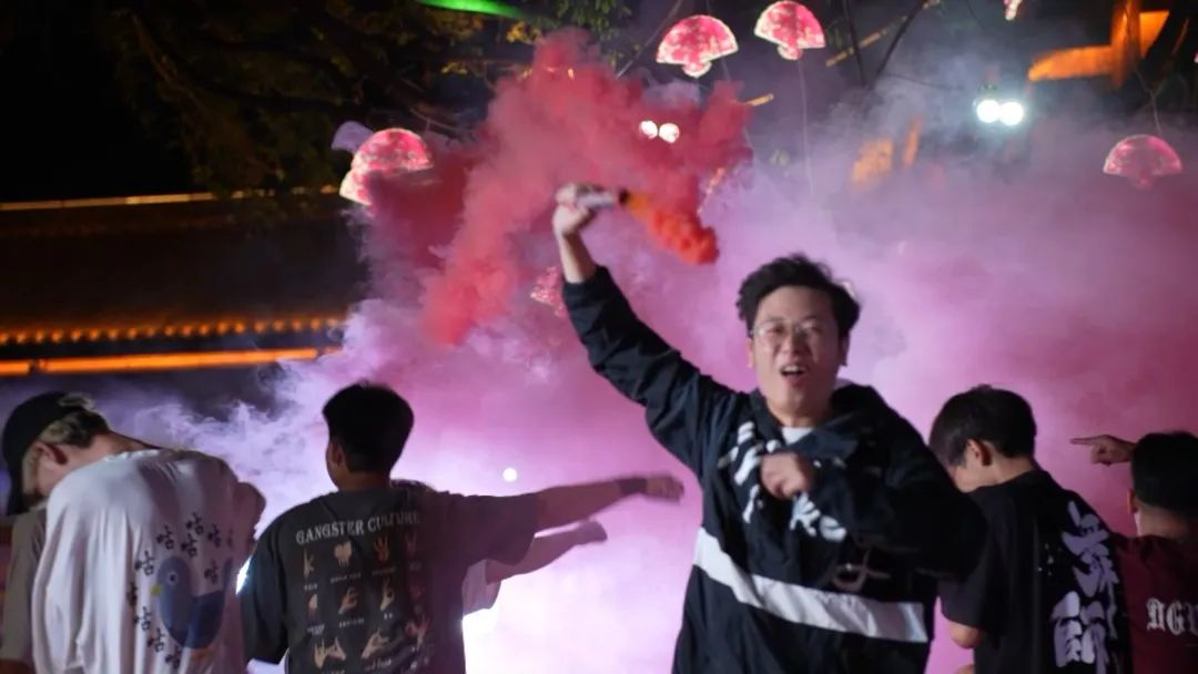 火焰可以助燃大家的激情,而烟雾更能增添神秘的氛围。现场的年轻人们释放彩色的烟雾,释放快乐的信号,不要害羞,在永安老街彩色神秘的烟雾里放肆大胆地摇摆吧~