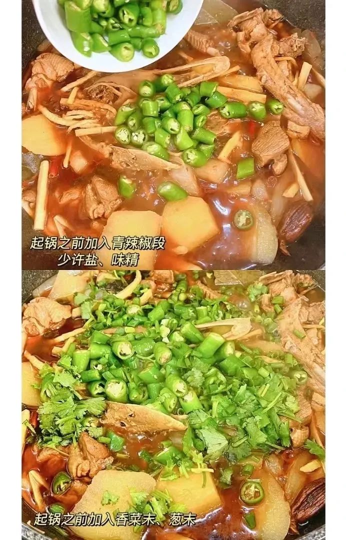起锅之前加入青辣椒段