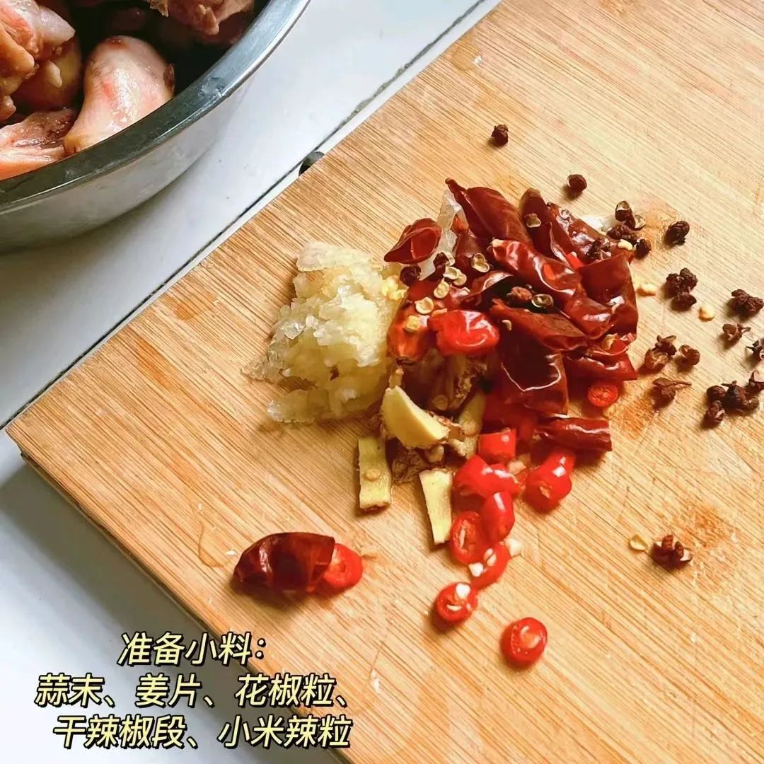 蒜末、姜片、花椒粒、