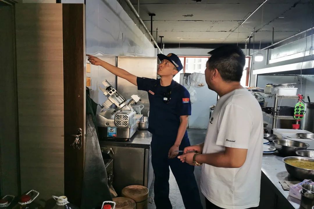 支队联合市场监管、住建、商务等部门深入餐饮行业开展消防安全检查,重点围绕场所燃气用具使用及其线路、管路的设计、敷设,消防设施、器材,安全出口、疏散通道等方面进行隐患排查。针对检查过程中发现的隐患问题,支队监督执法检查人员以“零容忍”的态度要求整改到位。同时针对餐饮行业出现的消防安全薄弱环节,要求各场所要认真履行消防安全主体责任,严格落实消防安全管理制度,对隐患要自查自纠,强化餐饮行业工作人员消防安全意识和火灾应急疏散能力,将消防安全管理工作明确到人。