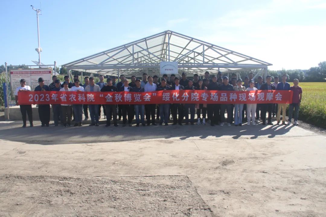 金秋九月迎丰收,扬帆起航奋进时。为深入贯彻习近平总书记提出的“要以科技创新引领产业全面振兴,把企业作为科技成果转化核心载体,提高科技成果落地转化率”的重要指示,推动省农科院各科研单位参展的大豆、玉米、水稻等新品种的成果转化与推广应用,加强科研单位与种子企业之间的交流与合作实现互利共赢,落实省农科院科技创新成果展览展示专项任务,9月10日,省农科院绥化分院综合展览展示基地田间展示交流会在绥化分院科研基地顺利召开。本次观摩会共有80多位参会代表。分别来自上市公司丰乐种业、亚盛集团子公司甘肃农垦良种有限责任公司,国家级农业产业化重点龙头企业东亚种业、富尔农艺,省农科院各科研院所,绥化市种业服务部门,以及黑龙江省种企等三十多家单位。