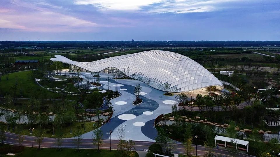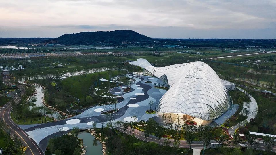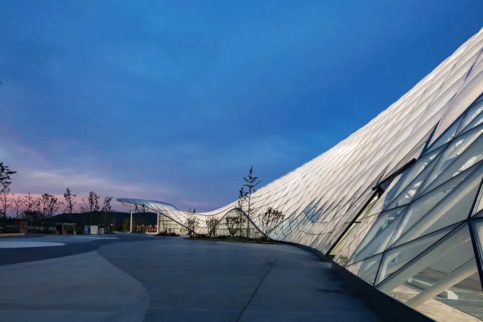 仪征地处长江下游,江水一路向东涌入博大的海洋,在此背景下,我们决定为世园会设计一座映射其江海底蕴的展馆,通过建筑空间、材料与技术的转译重构,使建筑与城市风土、人文情感融合共生。