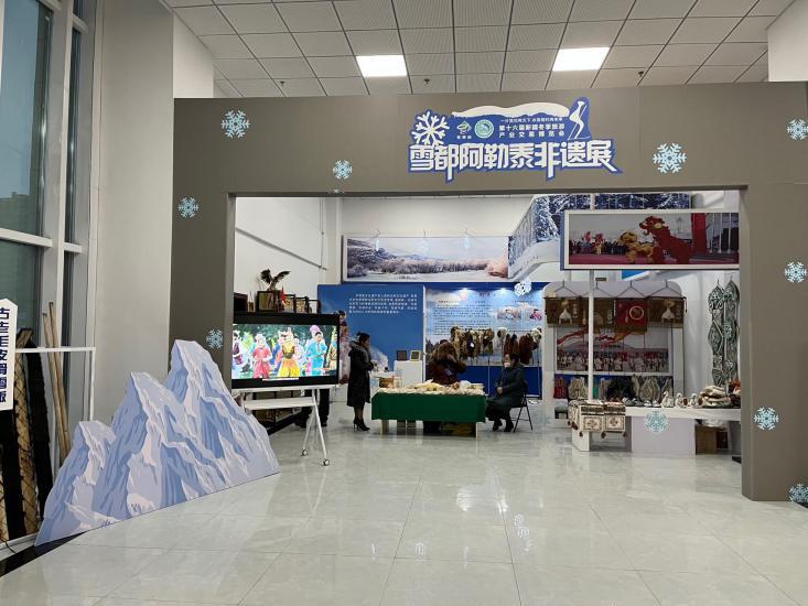 12月30日,第十六届新疆冬季旅游产业交易博览会在阿勒泰双创孵化基地隆重开幕,雪都阿勒泰非物质文化遗产展迎来了络绎不绝的参观者。