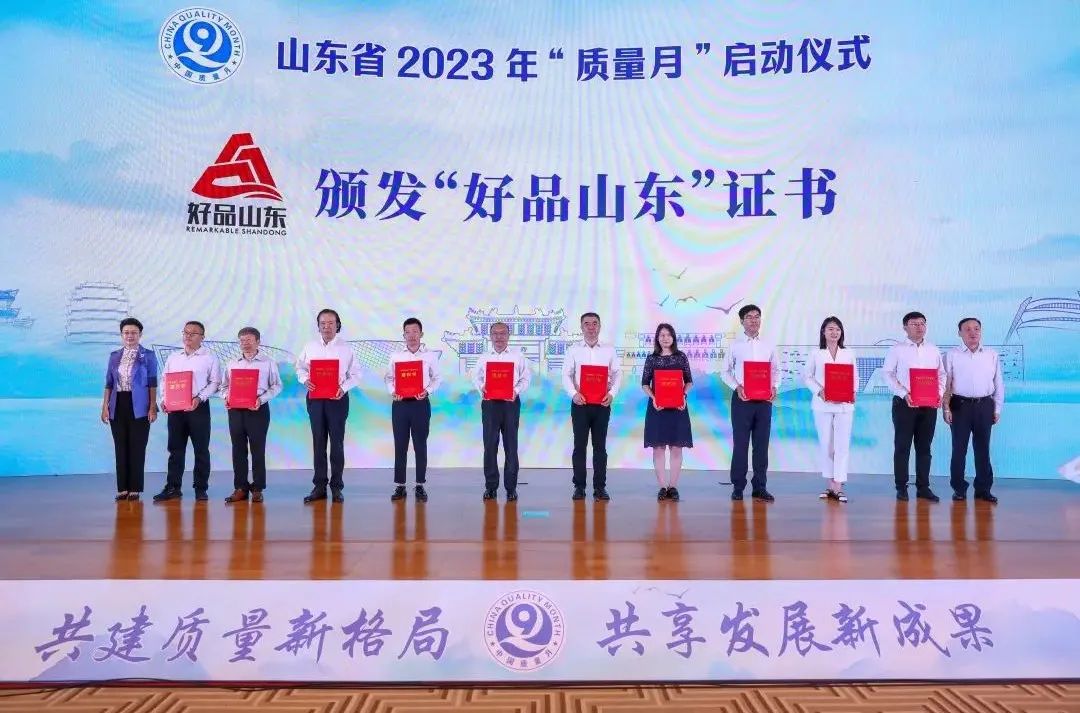 为大力实施《山东省质量强省建设刚要》,深入贯彻质量强省及人才强省战略,9月12日,山东省2023年“质量月”活动在淄博正式启动。活动发布了2023年“好品山东”品牌名单,公布了第一届企业首席质量官典型名单,对全省品牌及质量成果进行展示发布,共建质量新格局,共享发展新成果。
