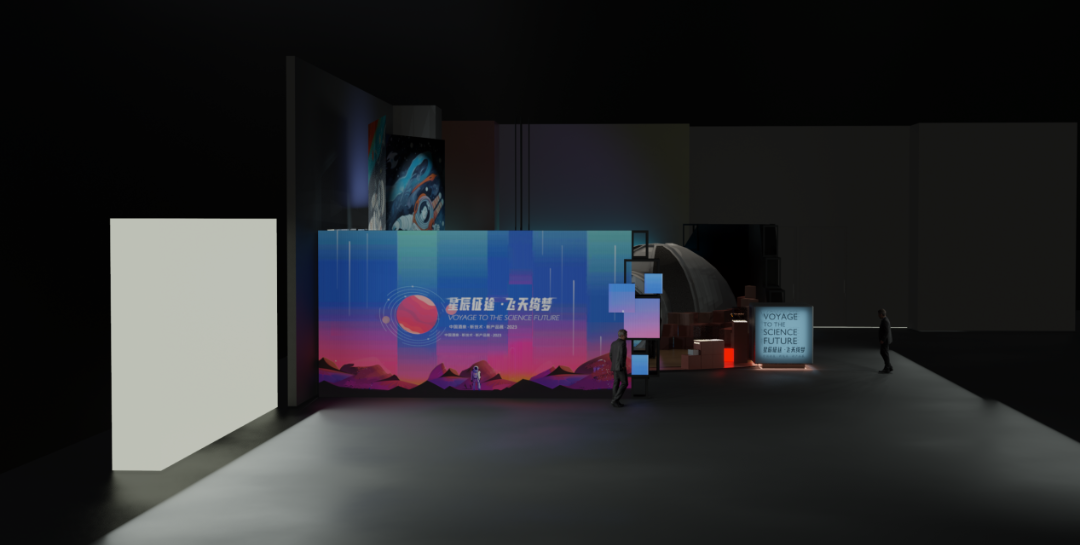 本次展览以“星辰征途 飞天绮梦”为主题,打造科幻场景,围绕火星基地,布陈科技展位,融合性展示、覆盖科幻文学+科幻影视+科幻体验。展览汇集了科幻领域企业的新技术、新产品、科幻道具及互动体验装置,包括图书周边、科技产品体验、电影氛围装置打卡、沉浸声光剧场等多重体验,带领参观者走进一个科技科幻融合、现在未来交汇的体验空间。旨在将人类的视角翻转过来,将其呈现为宇宙观察者的注视。强调参观者参与思考的属性,理解人类百年以来缘何不断向太空探索,剖析酒泉在其中的门钥作用。