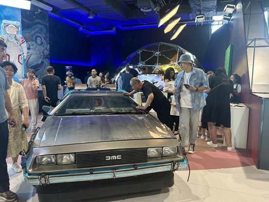 接下来参观者来到了“时间行者”主题区,通过科幻+酒泉的双料icon,展示酒泉城市特点,为科幻迷打造多重惊喜,直观提高展览的未来感与科幻感,为敦煌文博会打造一个必游打卡点。科幻电影《回到未来》系列中的德罗宁汽车1:1的模型,开启平行宇宙学说的时间机,该车也是《头号玩家》主角韦德的梦想座驾,是本次展览的重磅科幻彩蛋。