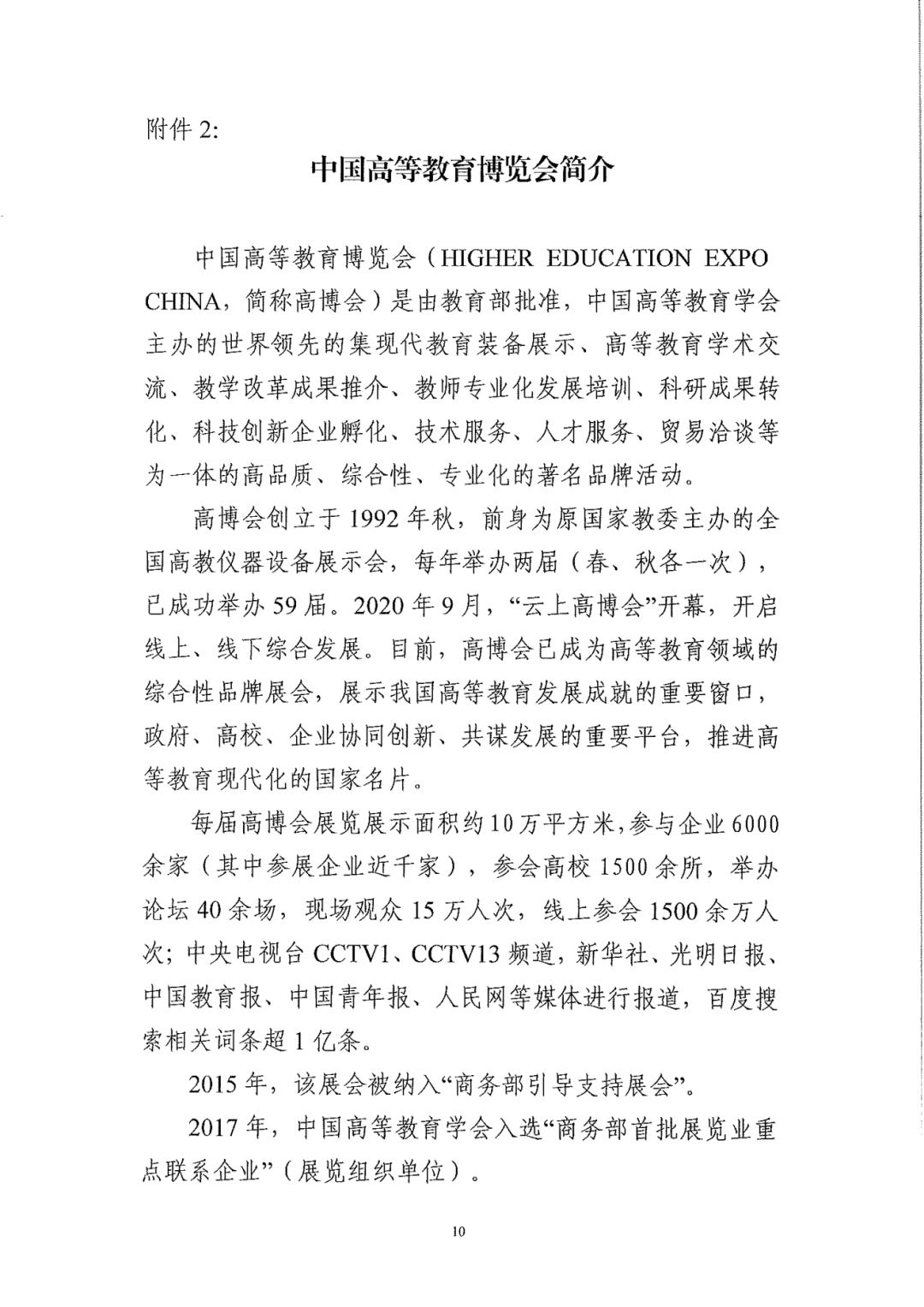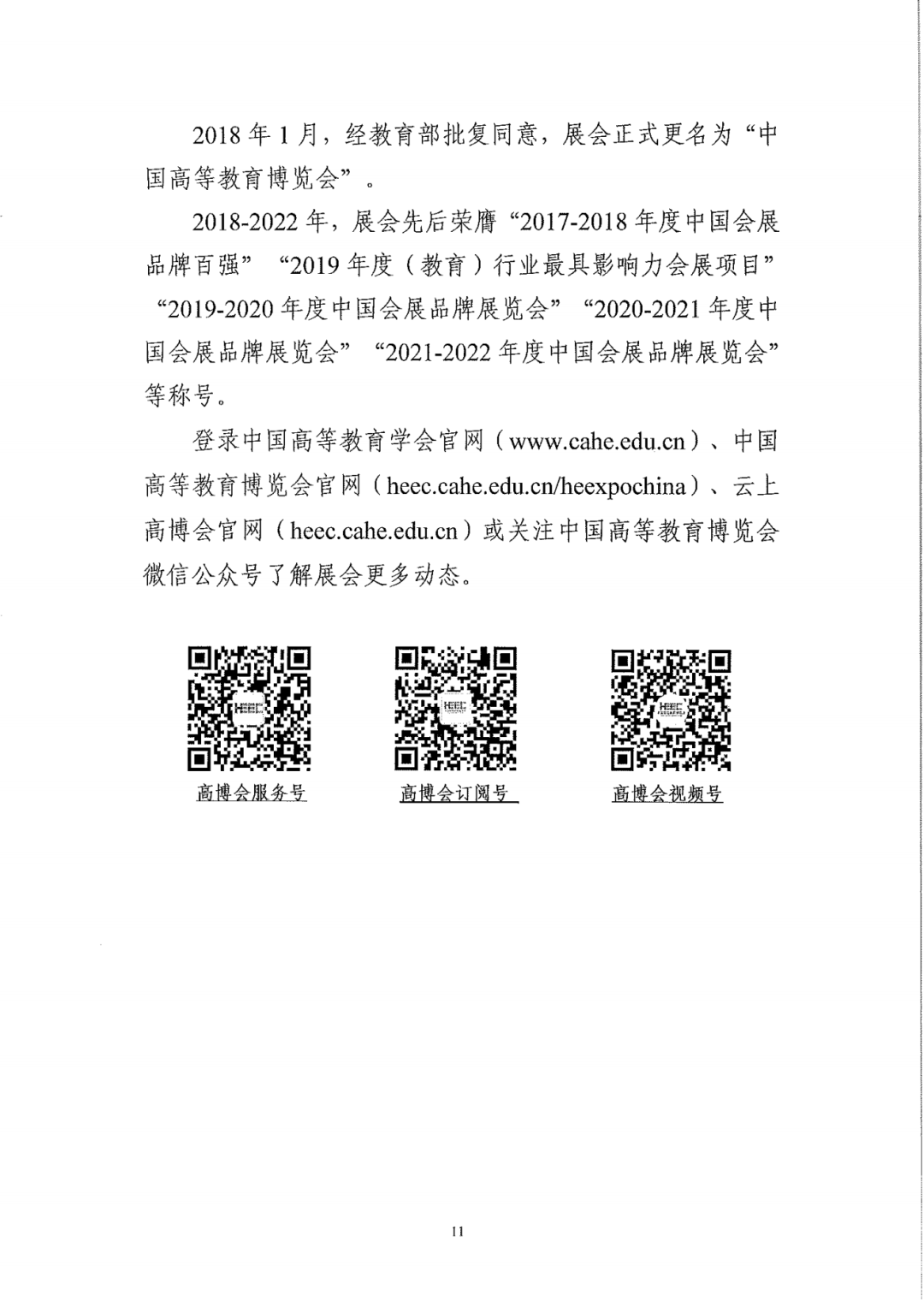 为深入学习贯彻习近平新时代中国特色社会主义思想和党的二十大精神,落实立德树人根本任务,深化职普融通、产教融合、科教融汇,推动高等教育装备现代化,服务高校创新发展,经教育部批准,中国高等教育学会决定在山东省青岛市举办第60届中国高等教育博览会(以下简称高博会),现将有关事项通知如下: