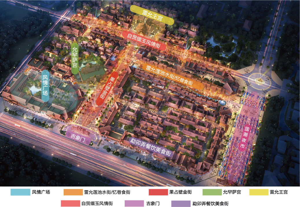 重点招商业态:品牌连锁、老字号餐饮、特色小吃、酒吧、咖啡吧、东南亚特产、民族手工艺品,缅甸红木工艺品、民族服饰、文创产品、珠宝翡翠、互动体验娱乐类等。