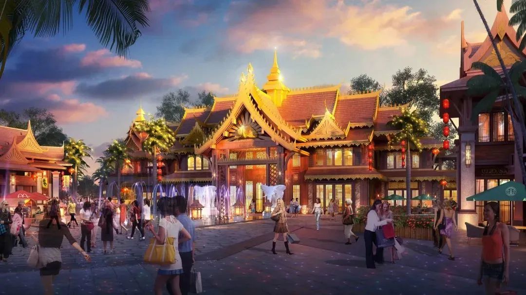 整个项目商业中心融合独特的边寨、民族、异域、边贸等多种特有文化,突出古镇的原始风貌,建筑形态以傣族风格及东南亚异域风格为主基调。