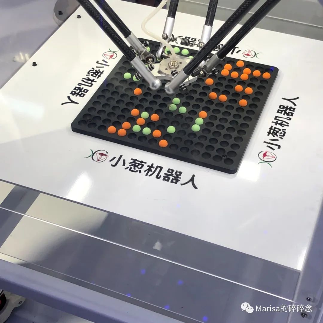 在“保定馆”找到了分拣机器人,它可以识别颜色并且按照预设拼图。张北的风点亮北京的灯