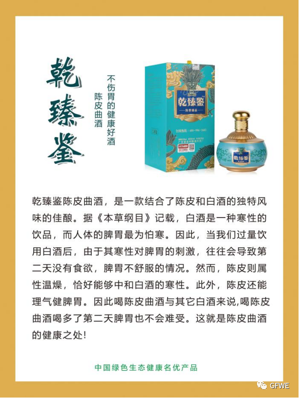 佛山乾臻鉴酒业有限公司以研发、生产和销售陈皮曲酒产品为主,经营的其他产品,还有山上山下古树茶、加拿大野生海参、印尼金丝燕窝、伊朗藏红花等产品。本篇文章将首先介绍乾臻鉴乾臻鉴品牌系列产品。