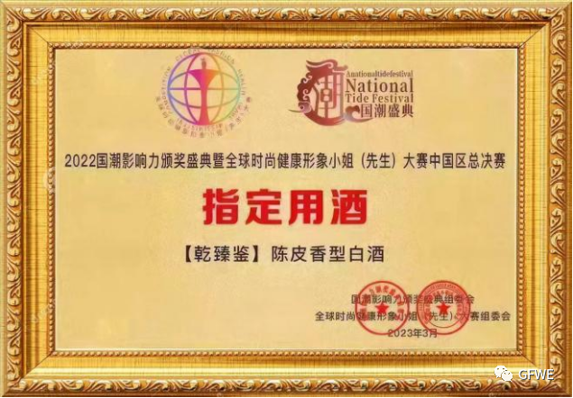 2022年乾臻鉴陈皮香型高端白酒更通过了CCTV中视购物频道《国货优品》栏目全面考察,凭借出众的品质与服务质量,在各大品牌的竞争中脱颖而出,成功入围《国货优品》评选,还成为2022国潮影响力颁奖盛典暨全球时尚健康形象小姐 (先生) 大赛中国区总决赛指定用酒,获得国内权威性和公信力双高的媒体平台的认可。