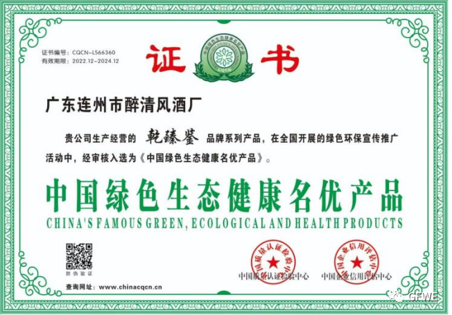 乾臻鉴品牌系列产品是广东连州醉清风酒厂酿造的高端地方名酒,入选为《中国绿色生态健康名优产品》,荣选为《国家权威检测达标产品》。