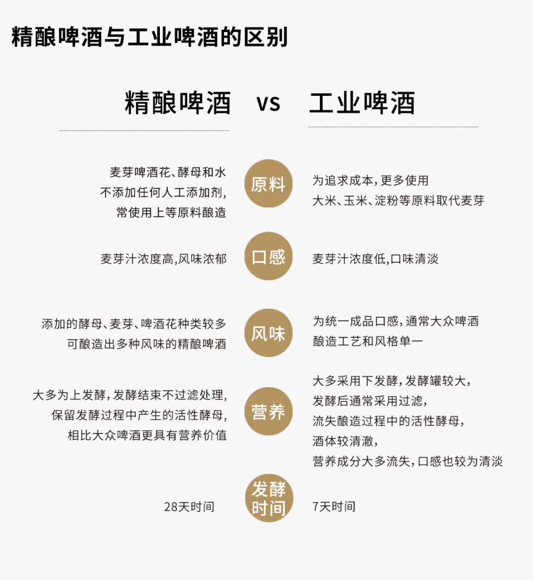 精酿啤酒,是区别于工业啤酒,只采用麦芽、啤酒花、酵母和水四种原料来发酵,不使用人工添加剂的啤酒。与工业啤酒相比,精酿啤酒原材料纯净、发酵时间长,且口感香醇、口味多样,多为手工酿造,更加强调品质。国内精酿啤酒行业萌芽于2008年,2014年起资本开始注入,精酿行业步入高速发展期。