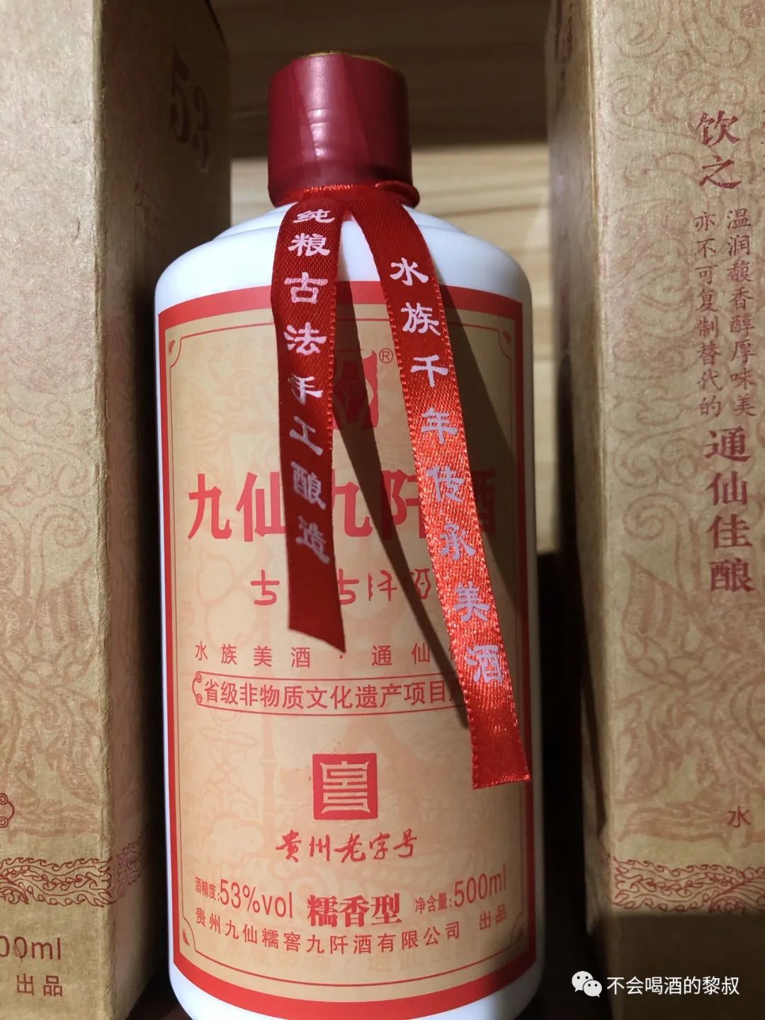 九阡窖酒酿造之法,已世代口传相承至今。坚持只用本地的深泉水、优质糯米为原材料,以周边深山里多种草本植物制作而成的水族传统酒曲为固态发酵剂。酒体色泽橙黄、透亮、陈香浓郁,具有九阡窖酒特有的香气;口感香醇、柔和、酒体成分协调,具有水族糯米酒独特的风格。同时集发酵工艺和蒸馏工艺于一身,区别于任何一款糯米酒、或黄酒、或药酒的单纯工艺特点,但又兼聚了它们的最大优势!她含有多种人体所需的营养成分和有益成分,长期适量饮用有利于养生健康。