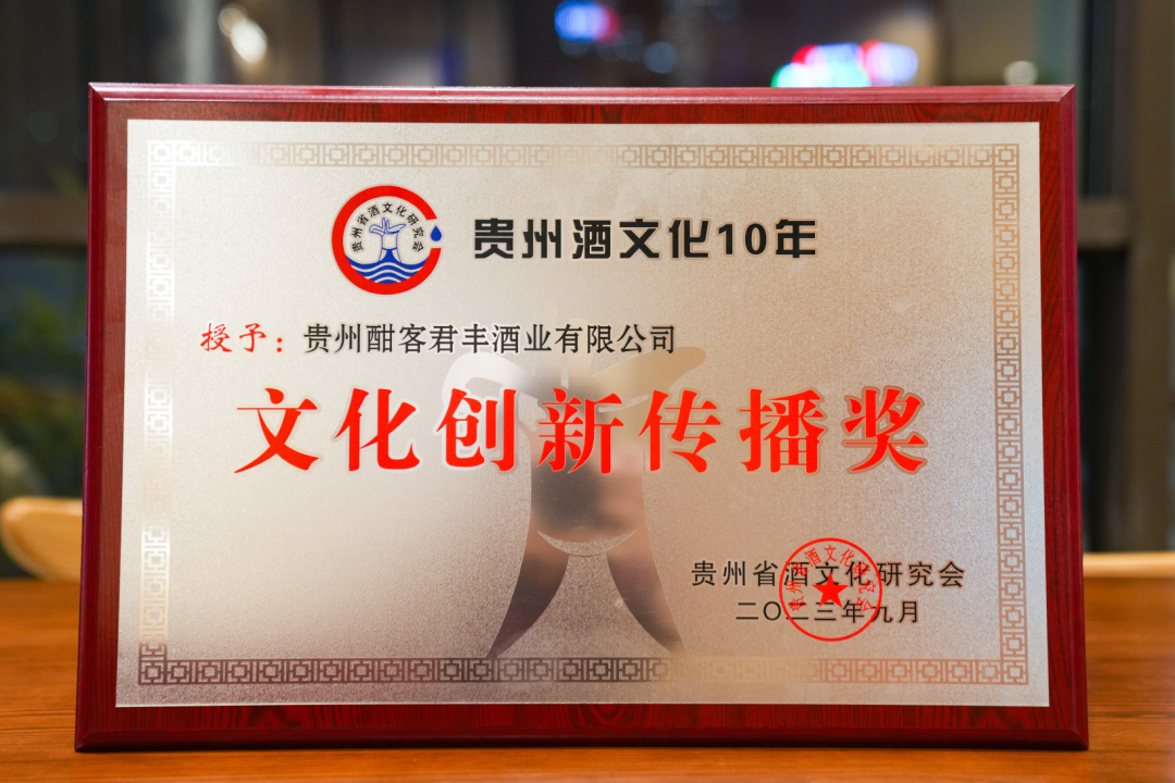 图 酣客君丰被贵州省酒文化研究会授予“贵州酒文化10年文化创新传播奖”荣誉