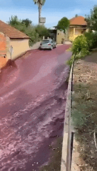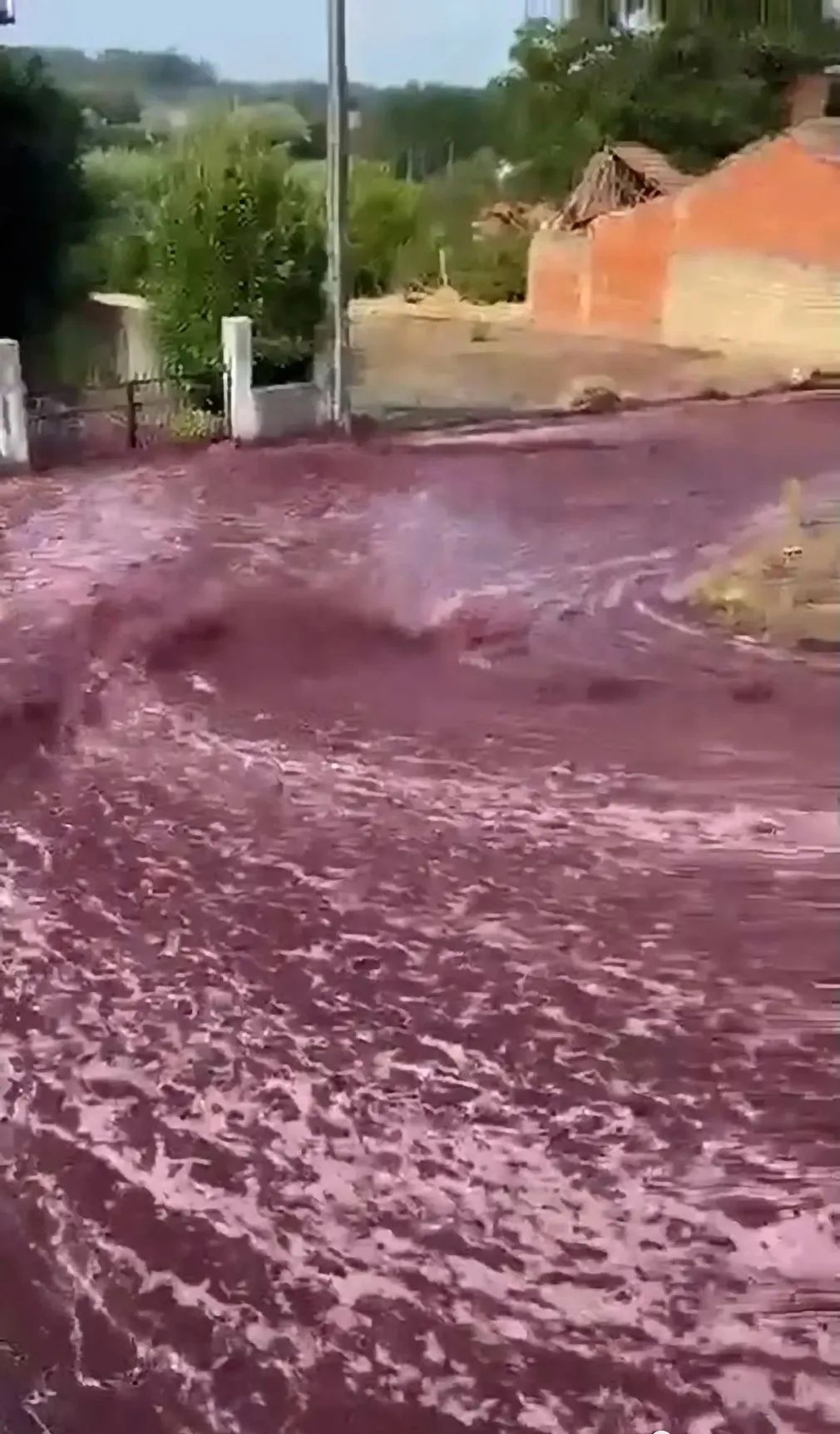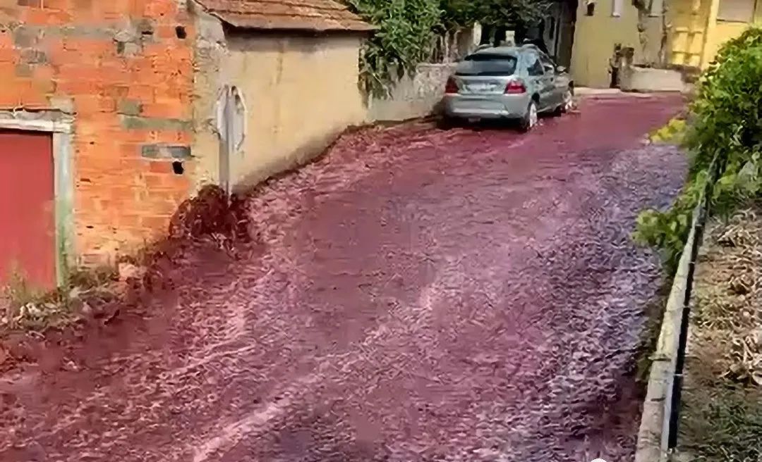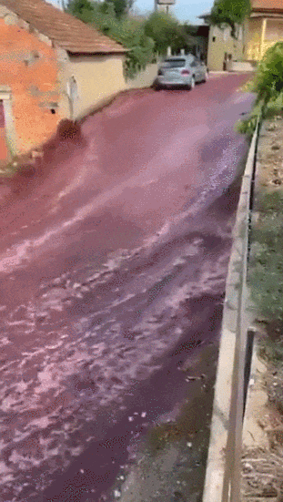 两天前,当地最大酿酒厂之一的莱维拉酿酒厂(Destilaria Levira)发生了一起意外,两个大型储酒罐突然爆裂,导致约220万升的红葡萄酒外泄。暗红色的酒水在街道上奔流,这才有了视频里的一幕。