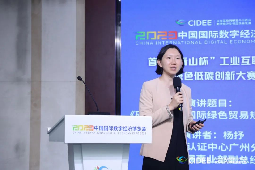 中国质量认证中心广州分中心绿色发展事业部副总经理杨抒女士作《碳标签助力国际绿色贸易规则应对》主题报告,分析国际气候变化新形势下绿色供应链与碳标签发展动态,提出国际绿色贸易规则的应对策略。