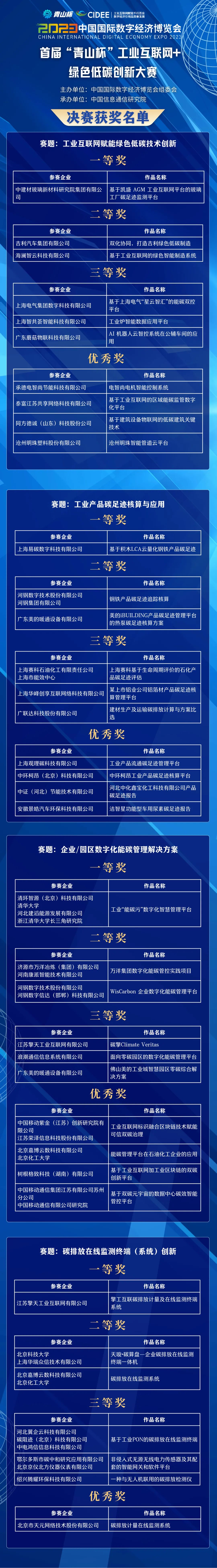 2023中国国际数字经济博览会 首届“青山杯”工业互联网+绿色低碳创新大赛圆满落幕
