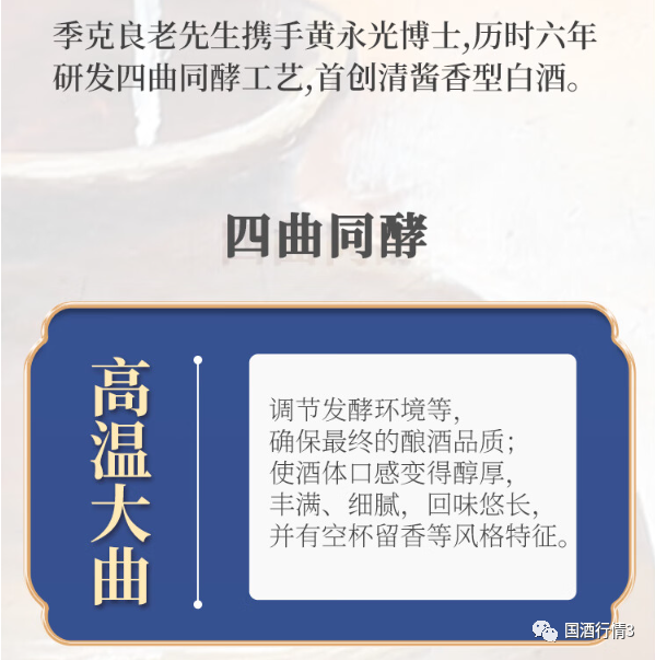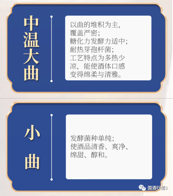 人民小酒:四曲同酵 (高温大曲、中温大曲、小曲、彝家坨坨酒曲)高温大曲:含有多种菌类及酶类物质, 是酿酒发酵的基础,能够提供发酵作用,同时刺激发酵,增加酒精浓度,调节发酵环境。有助于高粱发酵有效地进行,使发酵进程得到充分控制,防止有害的有机物污染,保证酿造质量,确保酿酒品质。使酒体口感醇厚、丰满、细腻、回味悠长,并有空杯留香等风格特征。中温大曲:糖化力发酵力适中,作用是能较好的保证发酵时“前缓、中挺、后缓”的发酵温度要求。在大曲中的菌,主要是耐热芽孢杆菌,能分解蛋白质淀粉等物质,产生香味物质及其前驱体使酒体口感变得绵柔。