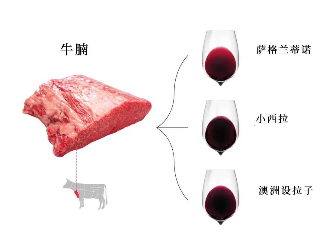 萨格兰蒂诺:来自意大利翁布里亚地区的稀有红葡萄酒。葡萄酒近乎不透明,黑色果香浓郁,单宁入口即化。萨格兰蒂诺会让牛腩变得优雅。小西拉:这是一款来自美国的烟熏味浓郁的佳酿,单宁强劲,可轻松切开肉质丰富的牛腩和烧烤。澳大利亚设拉子:单宁略少,口感更柔顺,带来烟熏和蓝莓-黑莓的香味。搭配原理