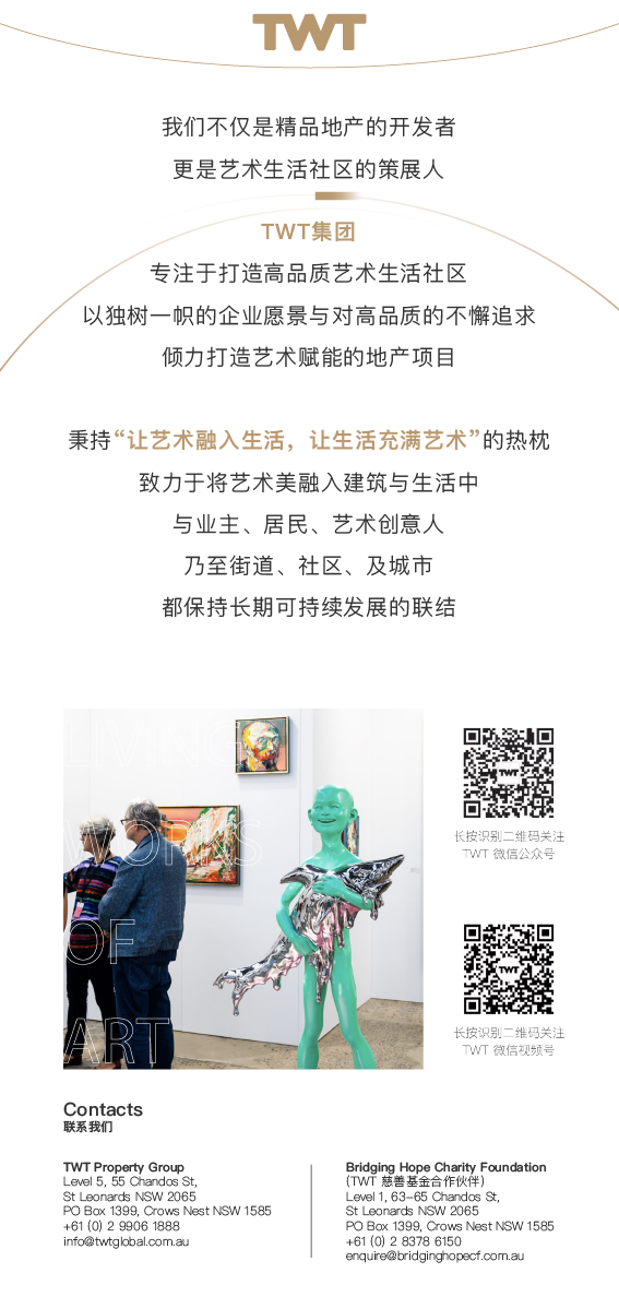 此外,曾驻留在TWT艺术区工作室的 Caroline Rothwell 、与TWT地产项目有合作的艺术家 Maria Fernanda Cardoso和 Janet Laurence 也受邀其中,通过各自丰富而独特的艺术内容,共同为观众呈现了一场自由、多元、和谐的当代艺术盛宴。