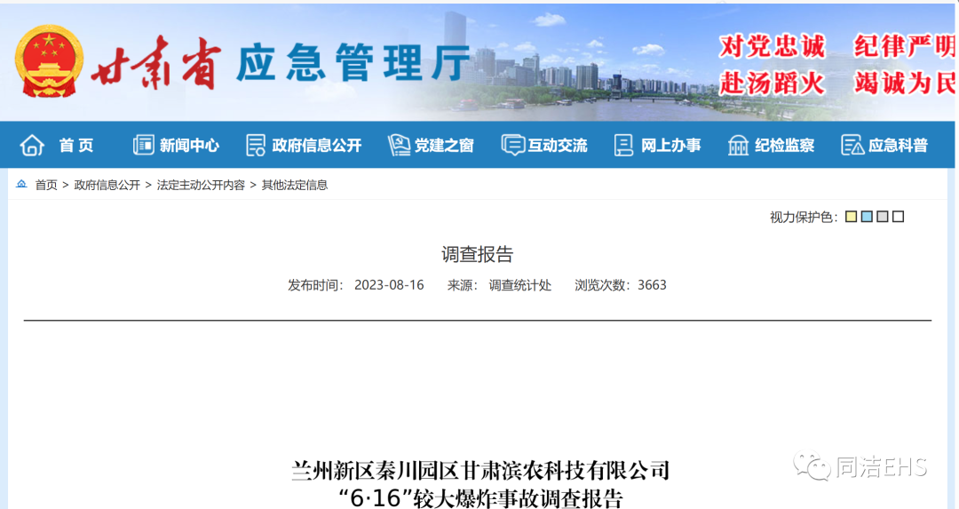 近日,甘肃省应急管理厅公布了《兰州新区秦川园区甘肃滨农科技有限公司“6·16”较大爆炸事故调查报告》。