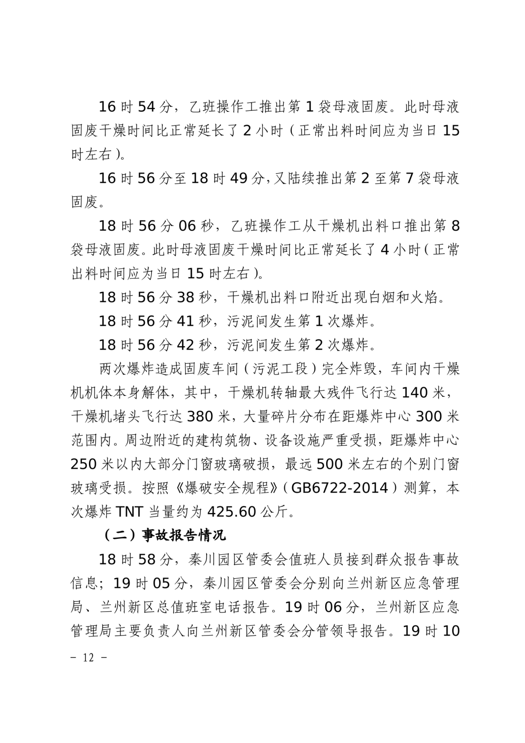2022年6月16日,兰州新区秦川园区甘肃滨农科技公司固体废料处理车间(污泥处理工段)发生爆炸事故,造成6人死亡、8人受伤,直接经济损失4190.45万元。
