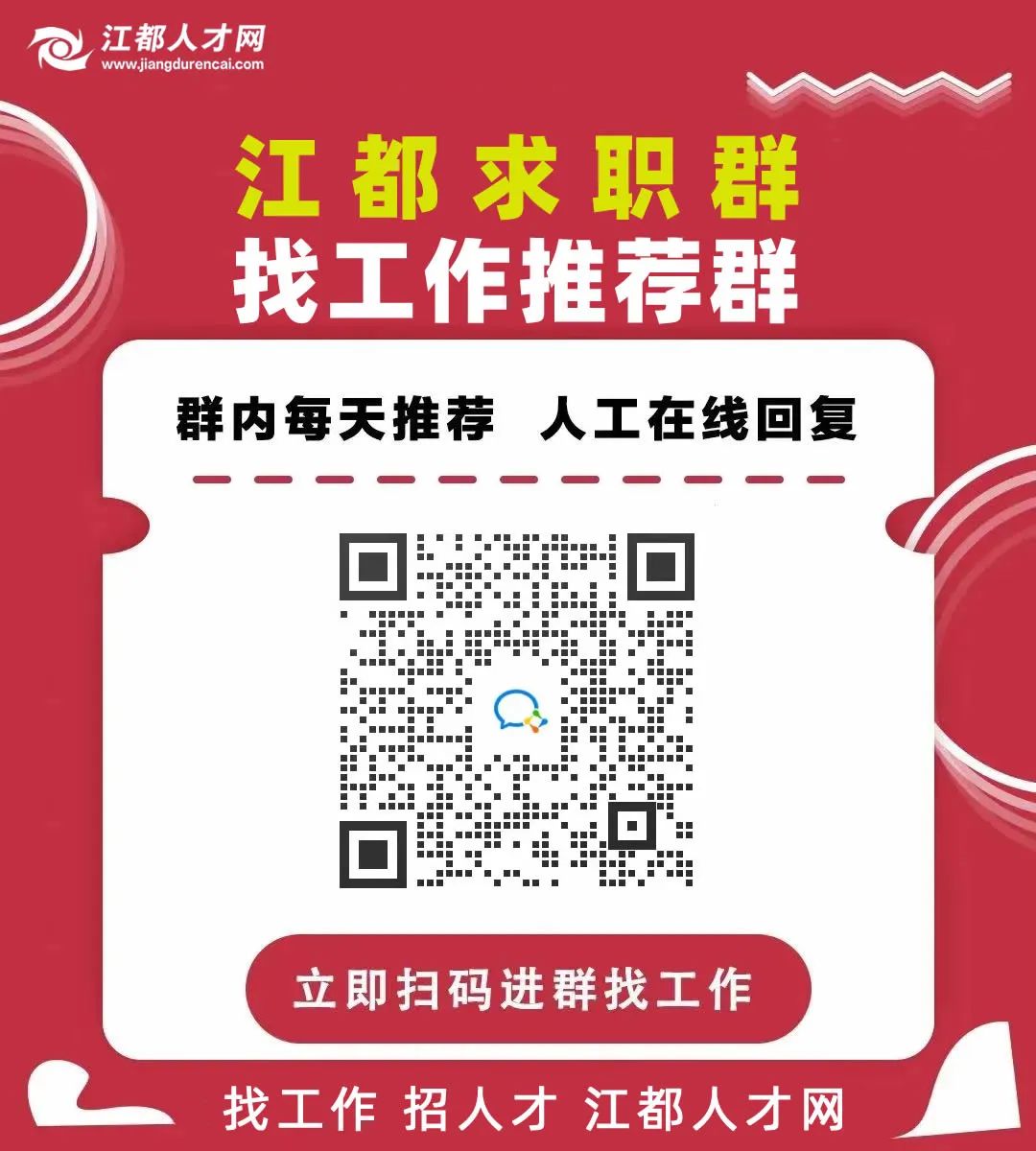 网站(www.jiangdurencai.com)、小程序、APP、微信公众号等名称均为江都人才网。关注“江都人才网”招聘求职更轻松!