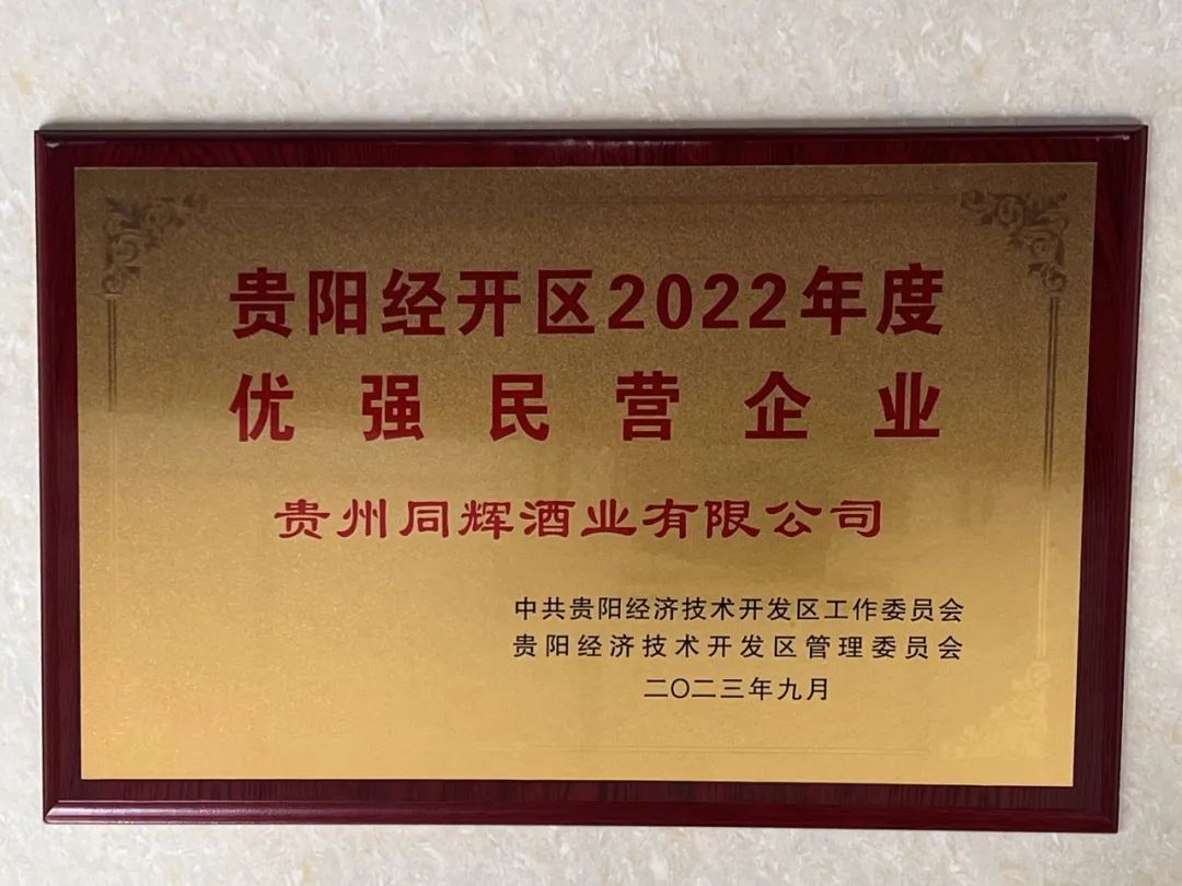 贵州同辉酒业有限公司作为经开区民营企业的其中一员,围绕自身经营主线,致力于贵州白酒产业发展,在此次民营经济高质量发展大会上,获得了“贵阳经开区2022年度优强民营企业”的称号。