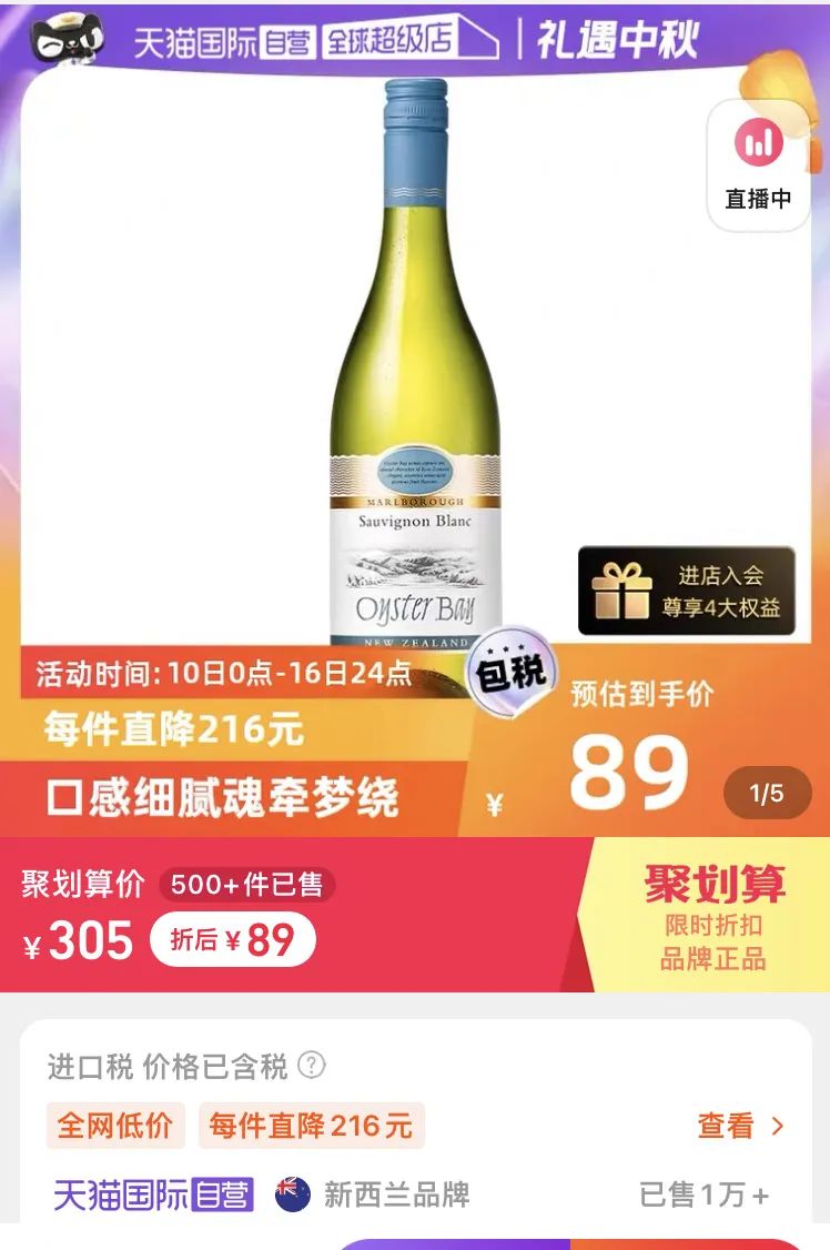 在流通市场上也能感受到新西兰葡萄酒的价格有所下跌。几年前,在中国内地很难购买到100元以内,来自新西兰明星产区马尔堡的白葡萄酒,而近几年,这种价位的马尔堡白却越发常见。在天猫国际,一瓶马尔堡产区的蚝湾长相思干白,售价仅89元/瓶。在山姆会员商店,某品牌的马尔堡长相思干白售价仅为78元。