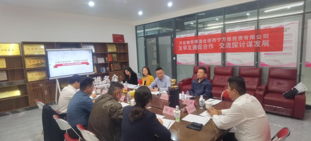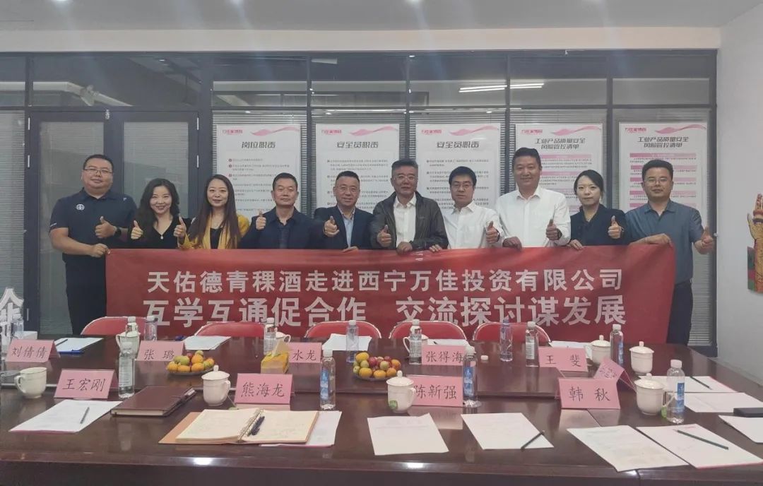 9月11日下午,青海天佑德科技投资管理集团有限公司常务副总裁、新丁香董事长鲁水龙,青海互助天佑德青稞酒股份有限公司营销中心青海财务部经理张得海,营销中心青海直销部部长张璐等一行五人前往西宁万佳投资有限公司以“互学互通促合作,交流探讨谋发展”为主题开展企业经营管理交流活动。