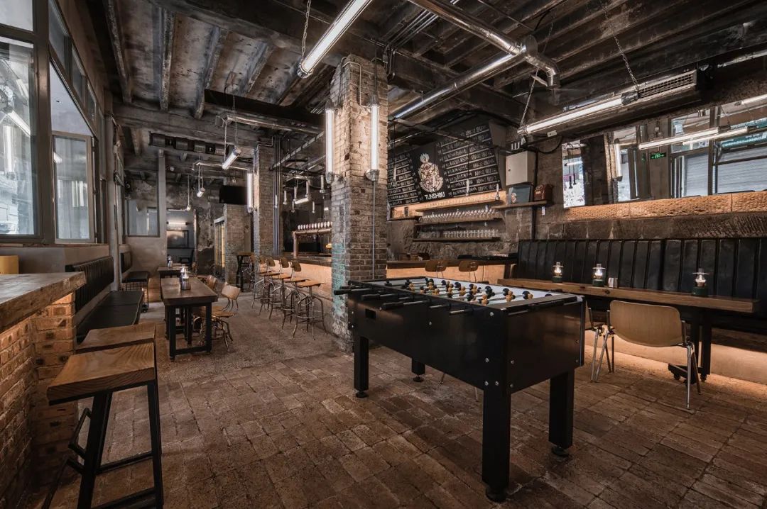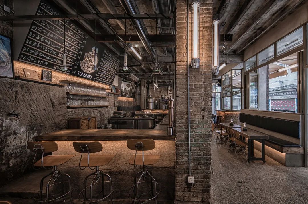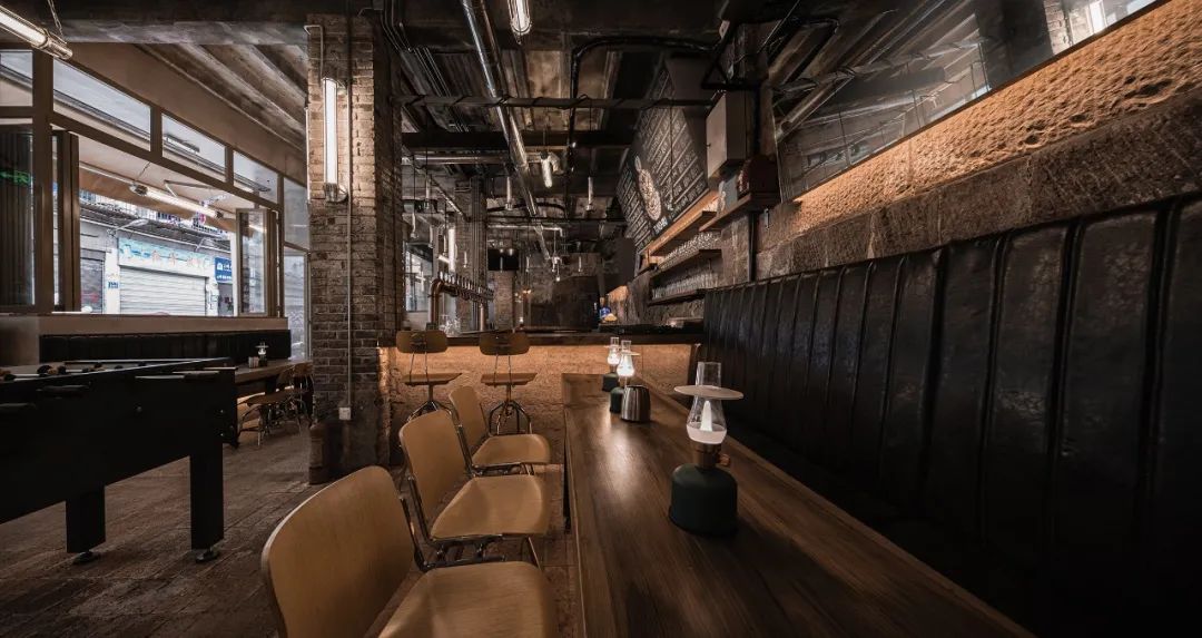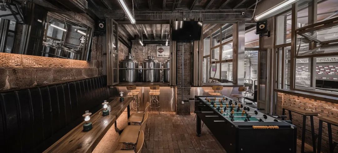 减法完成之后,是加法的开始。对于整个风格的定义,我们偏向于与老建筑的融合而非冲突。加之鲜酿啤酒的文化及工业属性,我们选择了西部雅痞、工业感,机车文化作为风格走向的关键字。