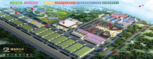 康美甘肃西部中药城占地总面积1000亩,总投资20亿元人民币。项目整体建设已完成二期,其中一期建设内容为中药材物流商铺和物流仓储,占地面积15万平方米;二期建设内容为现货交易中心、中药材仓储物流、精品商铺、“丝绸之路”中国甘肃中医药博览园,占地面积23万平方米。主要功能为中药材、中药饮片等集中展示交易和现货交易、质量控制、信息发布、第三方结算、经纪咨询、会展会务等业务,推动品牌创建、高新技术推广和高新产品研发等重点领域进行全方位合作。