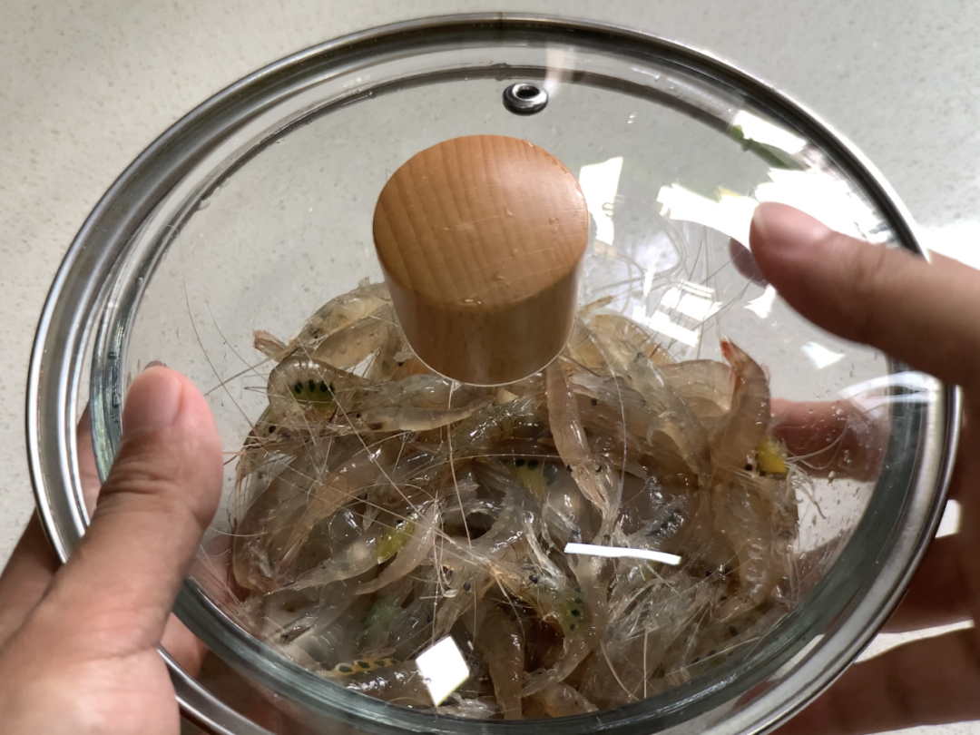 步骤1:首先把清洗干净的虾放碗里,加适量的高度白酒,摇晃均匀,让虾蟹都失去活性,就跟人一样喝醉了。