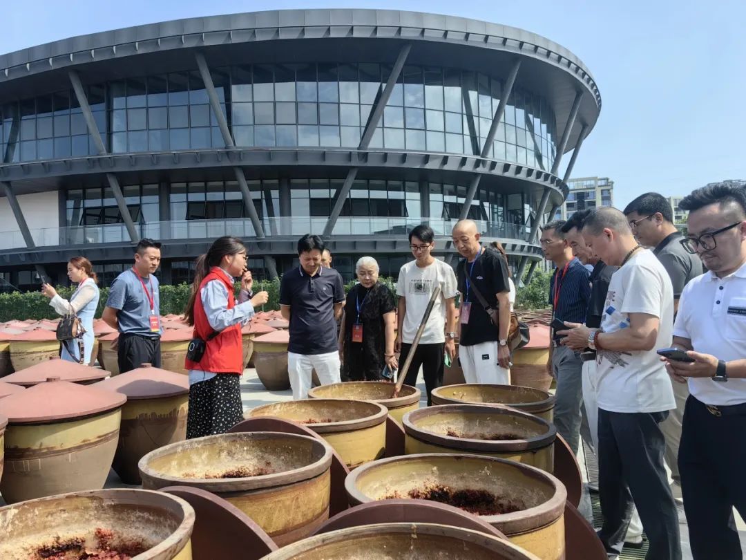 在以百年非遗老母水自然发酵为特色的老坛子食品有限公司,考察团沉浸式参观了标准化、规模化、智能化泡菜生产车间和生产工艺流程。
