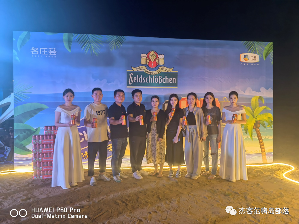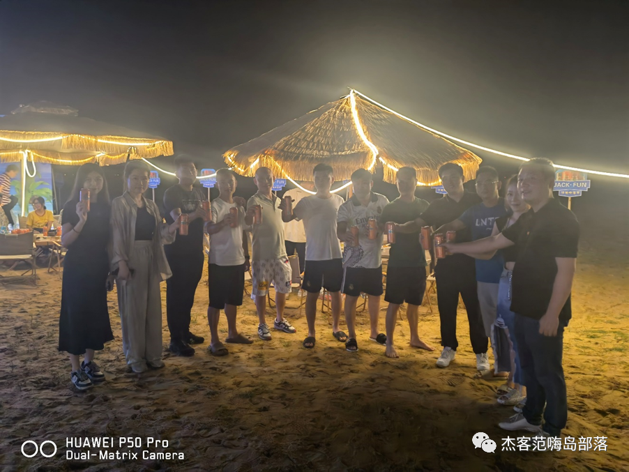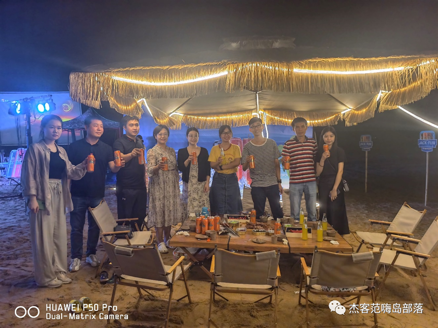 另据毛安东总透露,本次参加活动的,也有其他的酒类品牌方。他们之间早已建立深厚的友谊,大家会经常组织活动,相互交流、相互学习,相互支持、互相捧场。他们每一个品牌至少都有100人以上的团队,未来也肯定会和杰客范嗨岛部落有深度结合的机会。当问及中粮名庄荟最初为何选择杰客范嗨岛部落时?毛总笑着说,这是他的一个惊喜发现,他们之前经常在五星级酒店组织活动,以室内为主,但像今天这样主打进口啤酒的话,在沙滩就再合适不过了。不过作为省会城市的海口,像杰客范嗨岛部落这样能承接团建的沙滩资源真的非常有限。而他们选择杰客范嗨岛部落,还有另一个非常重要的原因:独家举办、场地开阔、安静不受打扰。这个些也正是杰客范嗨岛部落的优势和特色。