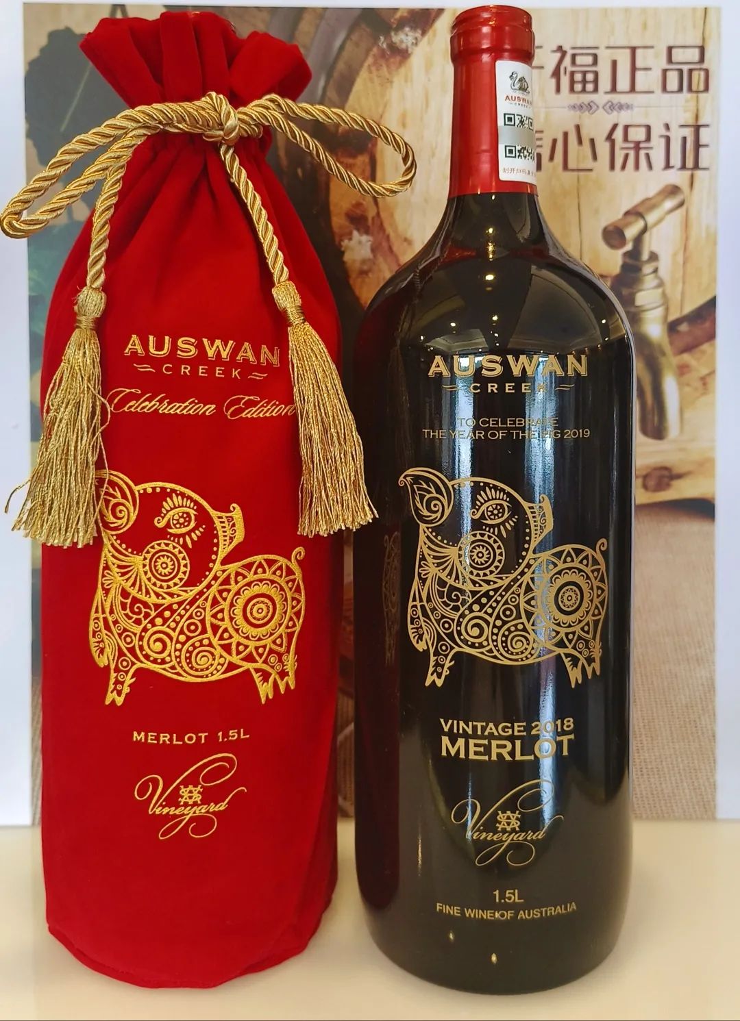 天鹅庄大金福美乐,1.5L大容量,红丝绒包装尽显华贵。