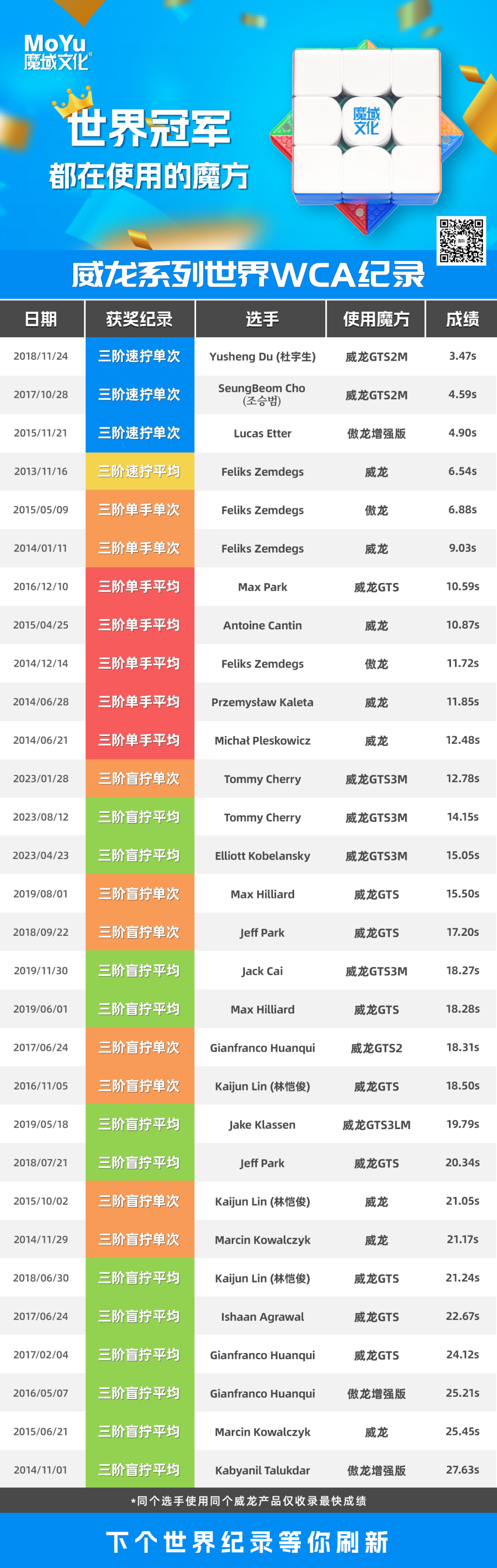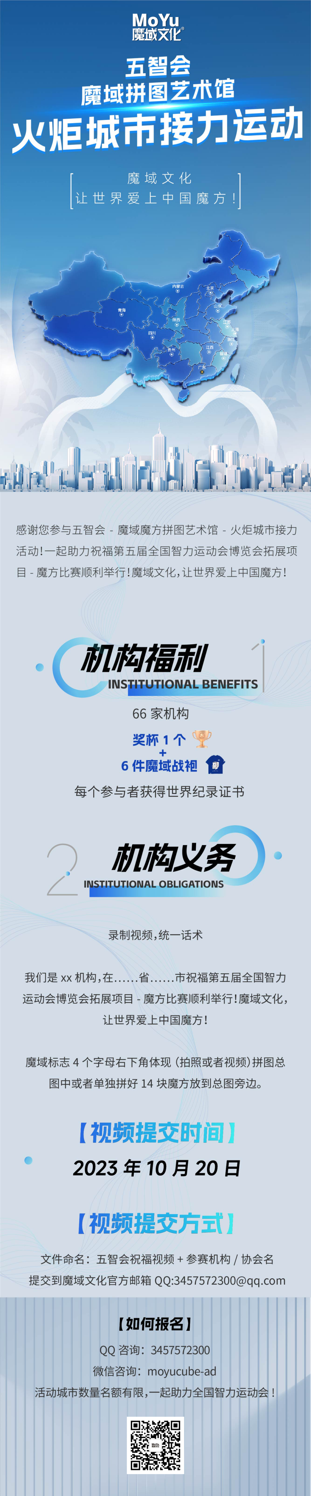 目前,活动正在火热进行。你还在等什么呢?此次魔域魔方拼图艺术馆活动面向全国66家魔方机构,只要你会拼魔方,拍摄视频就可以参加啦。参加活动,不仅有奖杯和世界纪录证书可以拿,优秀作品更有机会在五智会现场宣传,也许,下一个拼图艺术馆馆长就是你。想成为魔方届闪闪发光的自己吗?那就来报名参与吧~