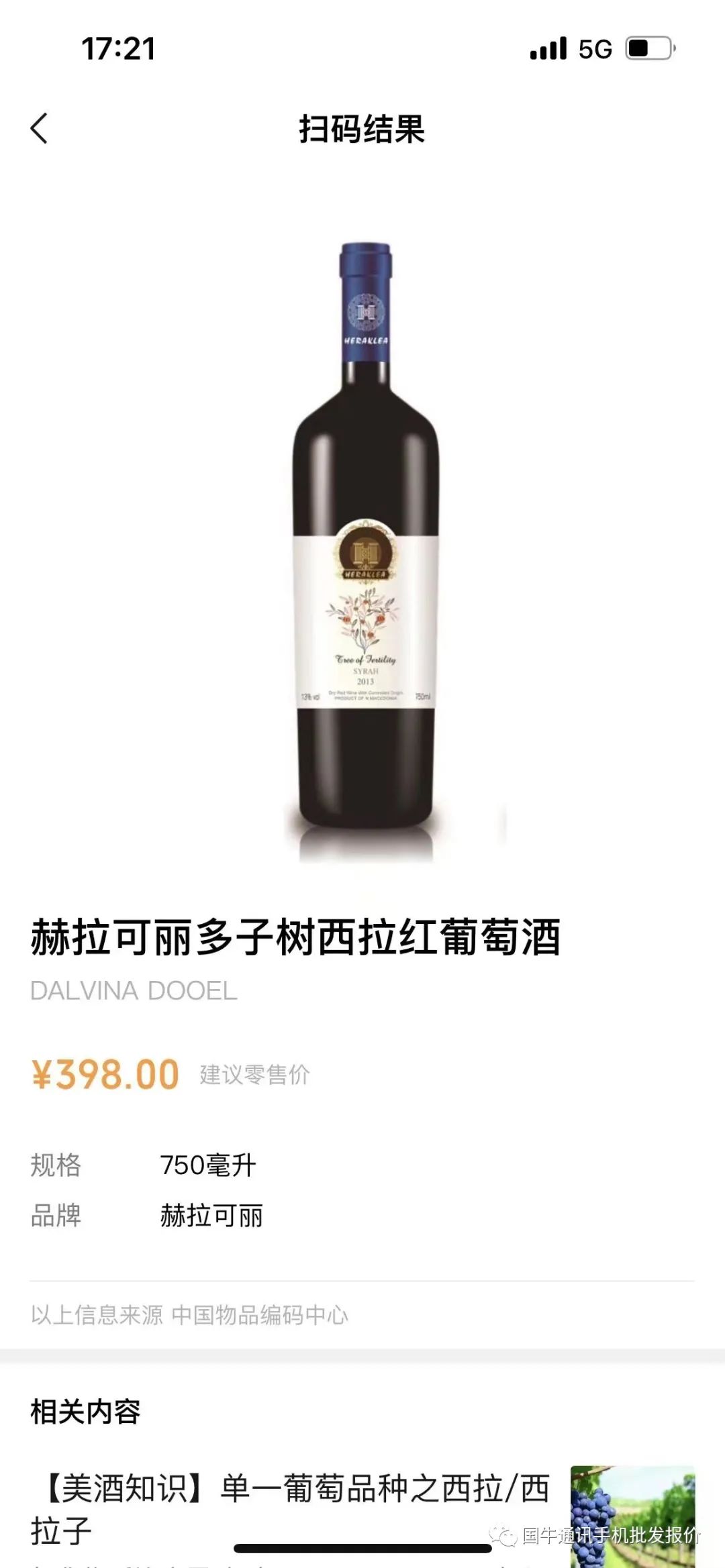 欧洲北马其顿 共和国国酒酒 庄纯进口原瓶红酒,实体店售价688元/瓶,京东扫码价398元/瓶,国牛统一批发价199/瓶,