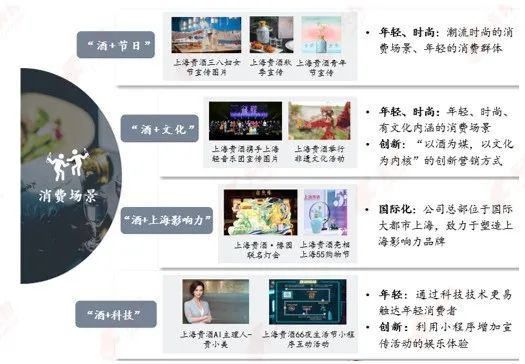 以消费需求为导向,营销模式积极创新,提升品牌营销效率。中国传统白酒企业的营销活动更多是围绕白酒产品本身,而上海贵酒则围绕酒类产品的消费场景,通过不断创新的营销活动,塑造品牌形象,产生品牌效应。